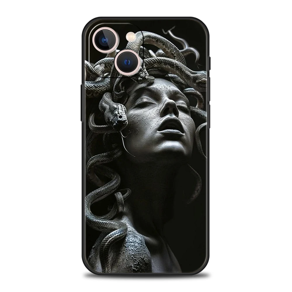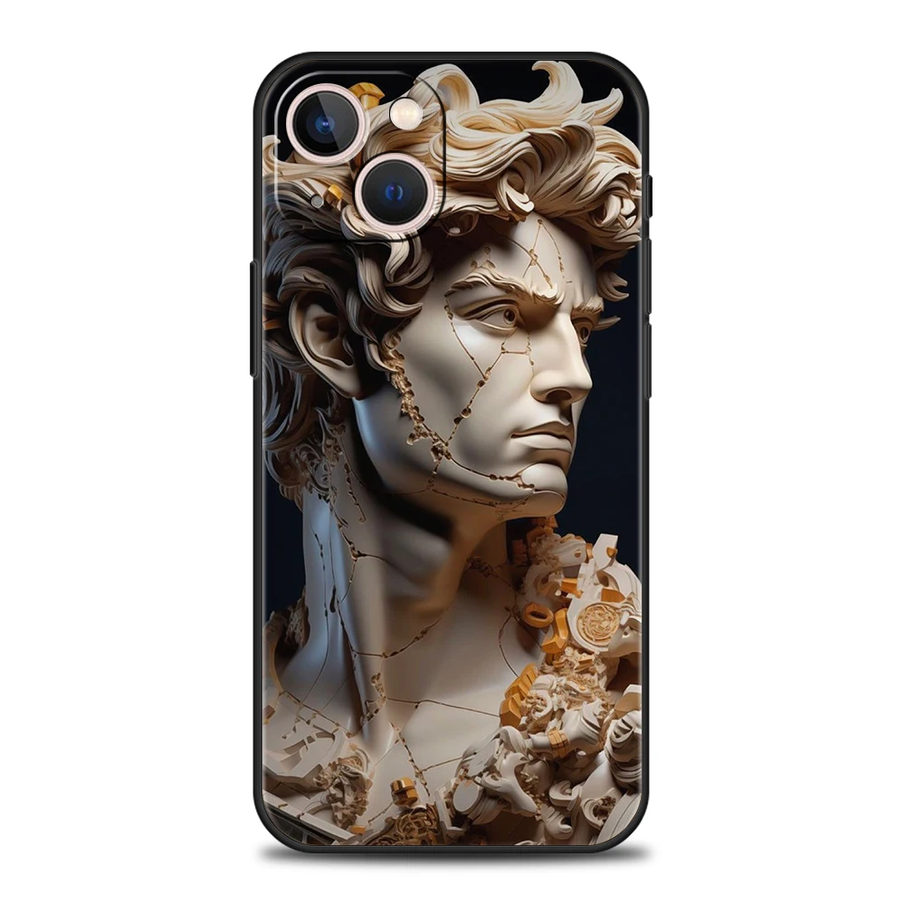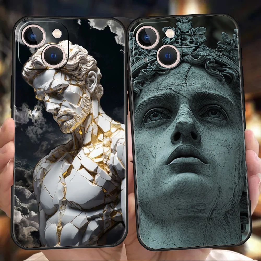 Comprar Funda de teléfono de TPU de lujo para iPhone 16 11 15 14 Pro MAX 12 13 7 8 Plus X XR XS SE 2022, cubierta negra, esculturas de collage estéticas artísticas