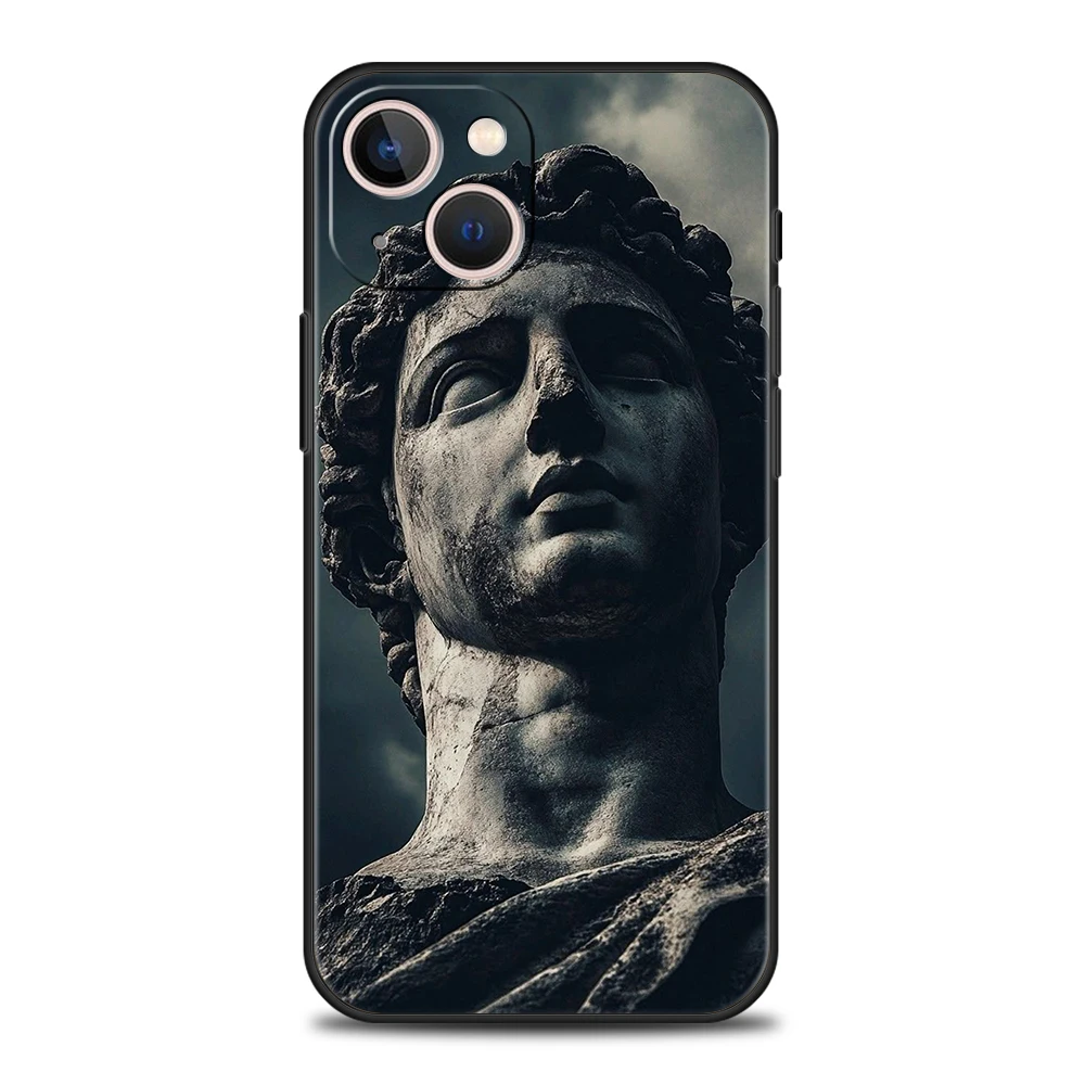 Comprar Funda de teléfono de TPU de lujo para iPhone 16 11 15 14 Pro MAX 12 13 7 8 Plus X XR XS SE 2022, cubierta negra, esculturas de collage estéticas artísticas