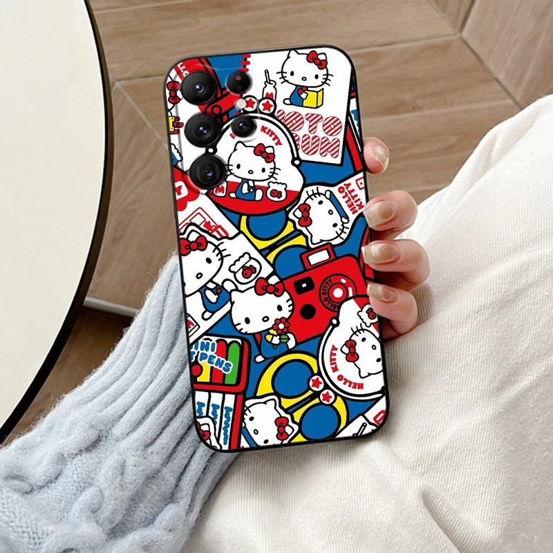 Comprar Funda de teléfono de TPU negra Sanrio Hello Kitty de lujo para Samsung Galaxy S24, S23, S22, S21, S20 FE, S10, S10E Plus, Ultra Pro Lite, 5G