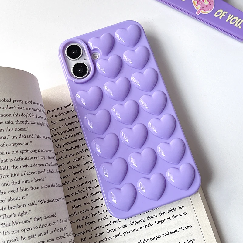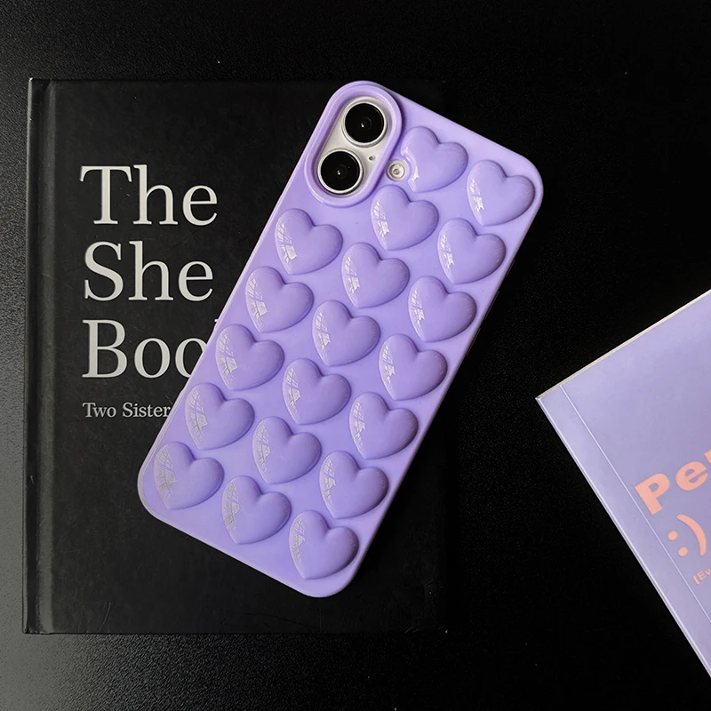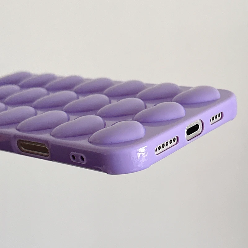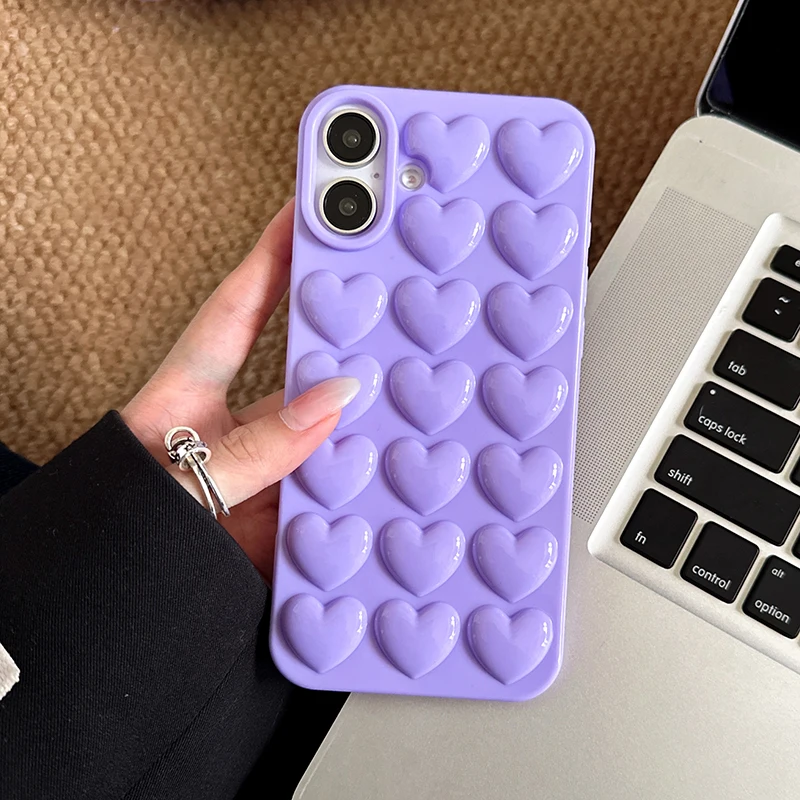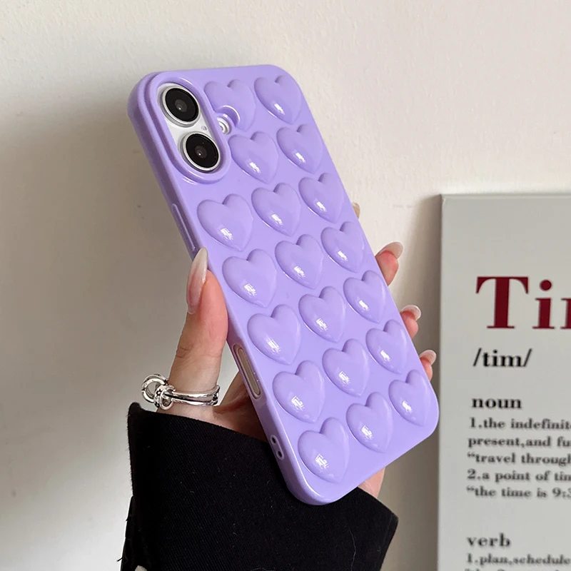 Purple 3D Heart Glossy Silicone TPU Phone Case For iPhone 16 15 14 13 12 11 Pro Max 15 Plus Shockproof Back Cover Funda