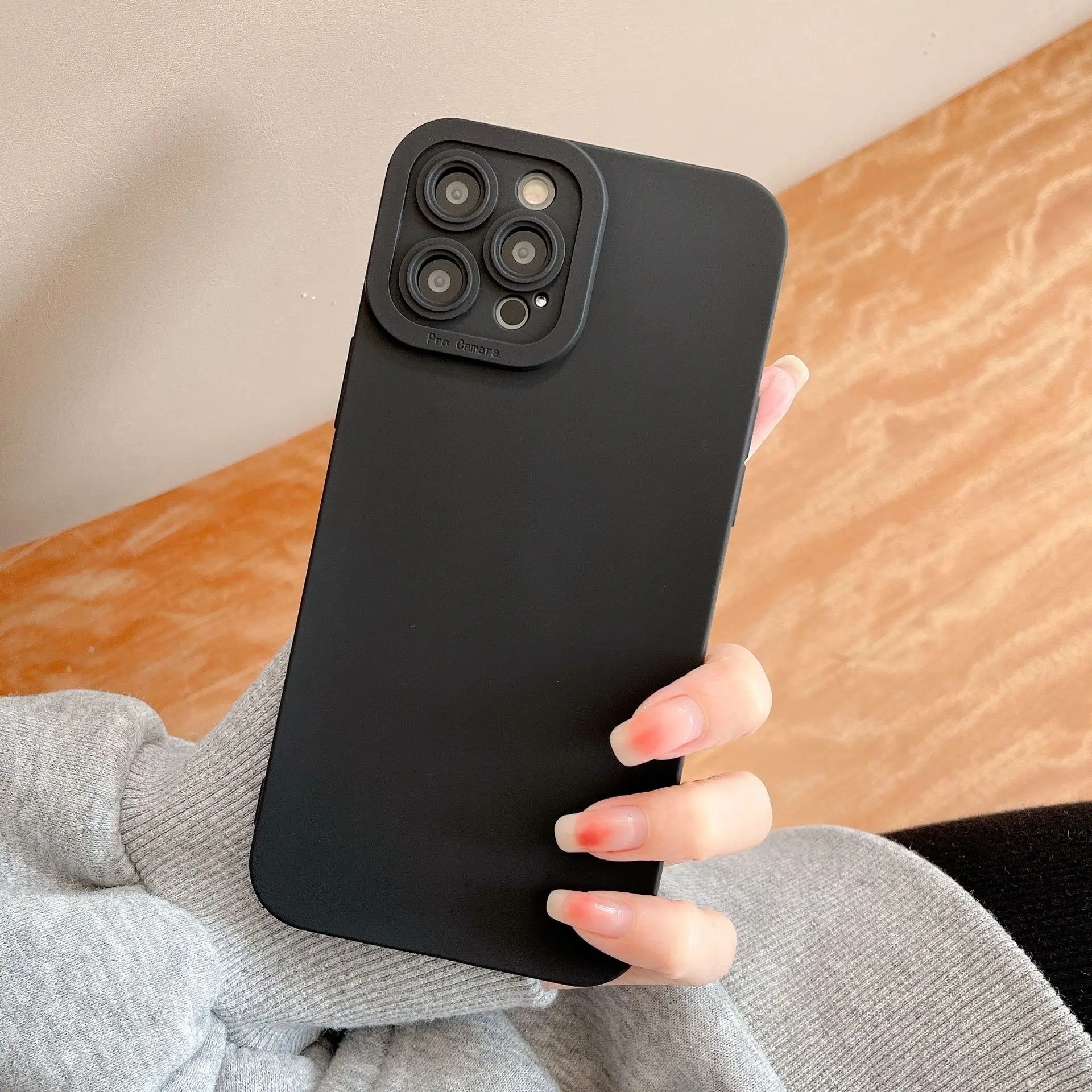 Funda de teléfono TPU de silicona negra a prueba de golpes de alta gama para Iphone 14 13 12 Pro 11 Pro Max X Xs XR 7 8 Plus SE, funda protectora para lente para hombre