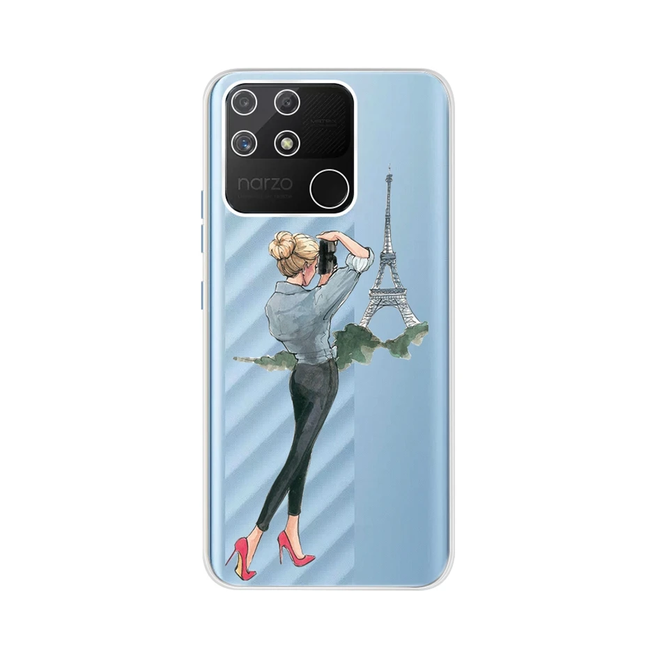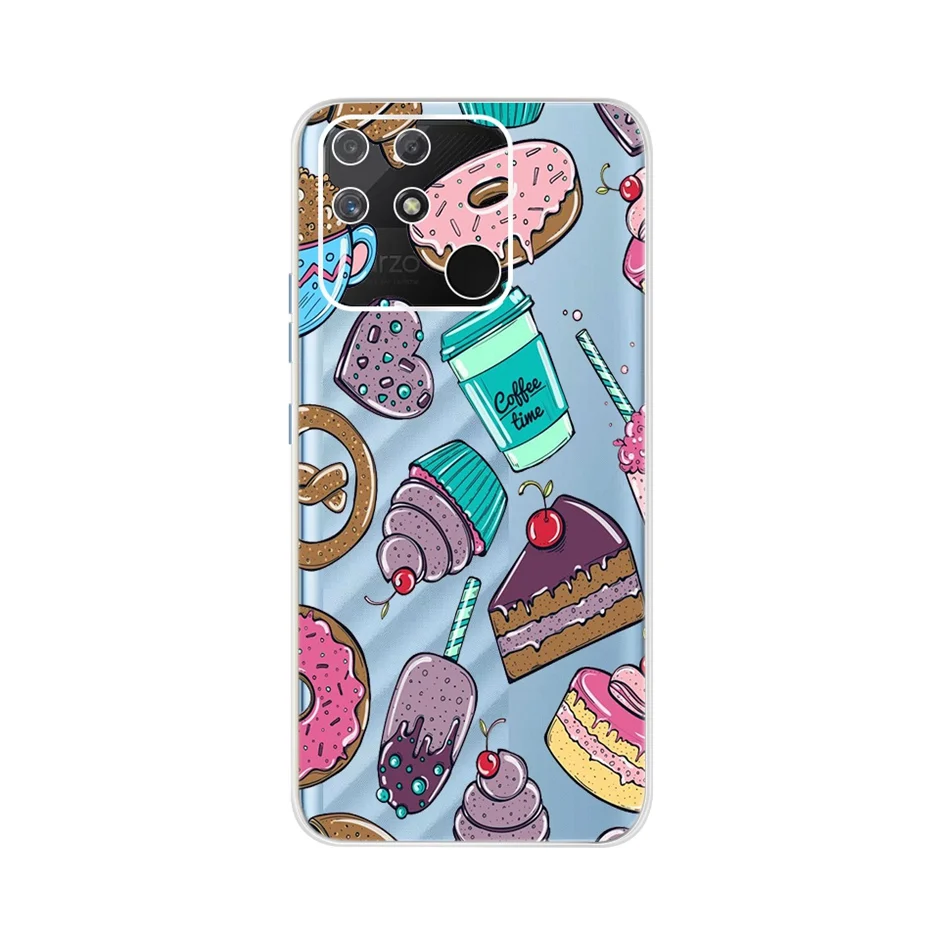 Funda de teléfono de TPU transparente con estampado bonito para Realme Narzo 50A RMX3430, funda trasera de silicona suave para Realme Narzo50A 50 A Fundas