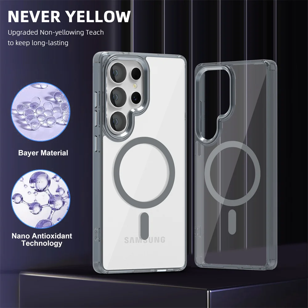 Luxury Translucent For Magsafe Phone Case for Samsung S25 S24 Plus S22 S23 Ultra FE A55 A35 A16 A15 5G Wireless Charging Cover