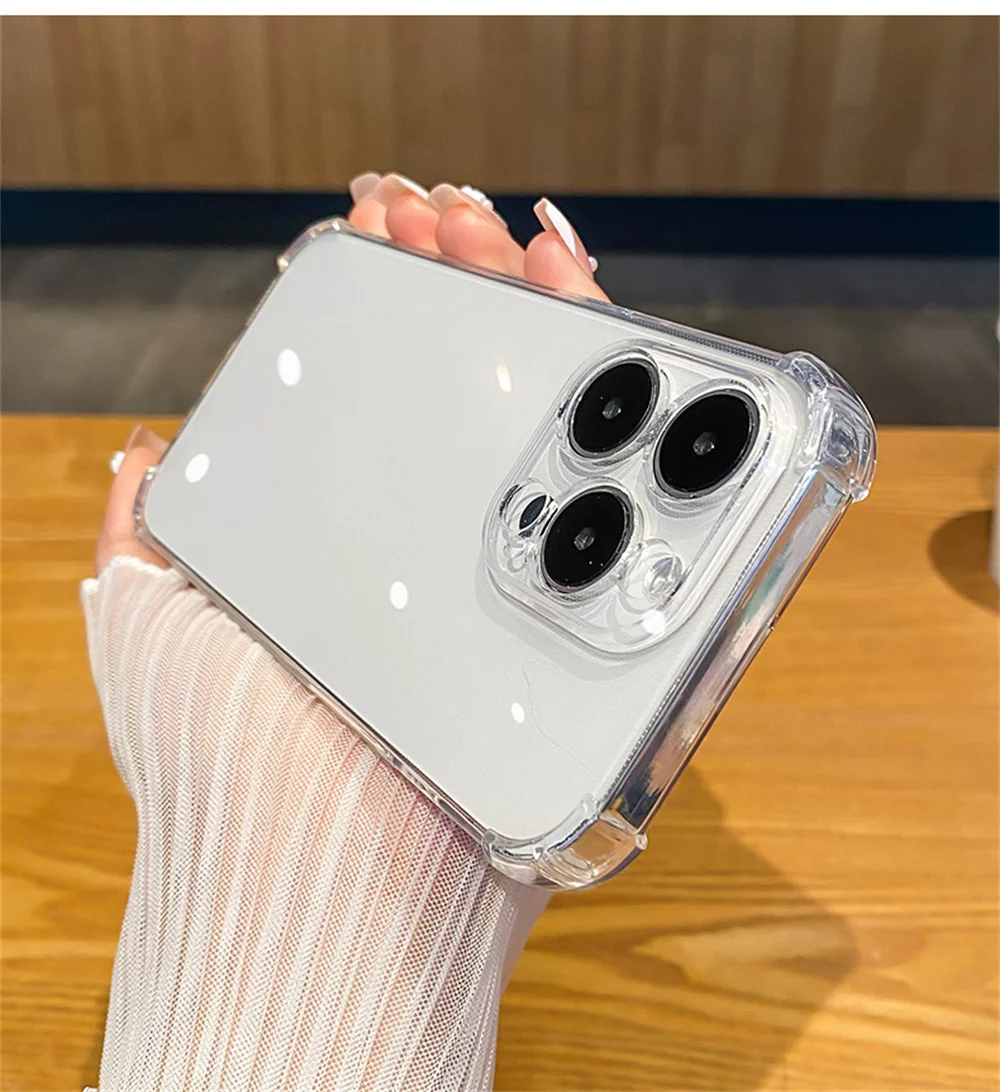 Comprar Funda de teléfono transparente a prueba de golpes de lujo para iPhone 15 14 13 12 11 Pro Max X XR XS XS Max, funda trasera dura transparente de silicona