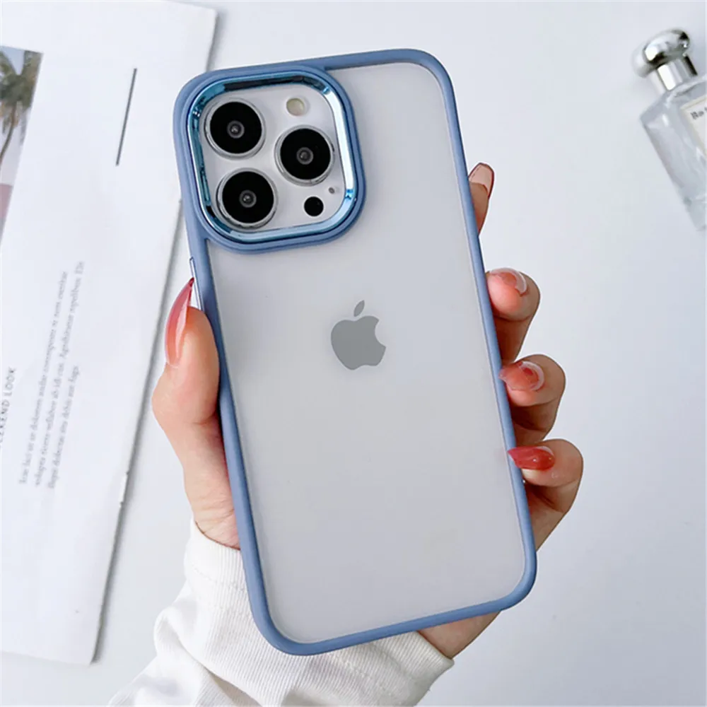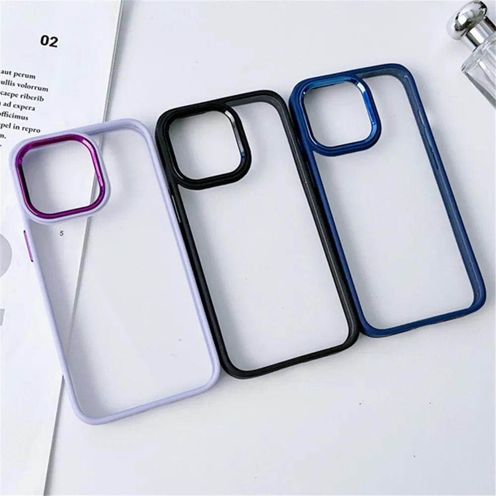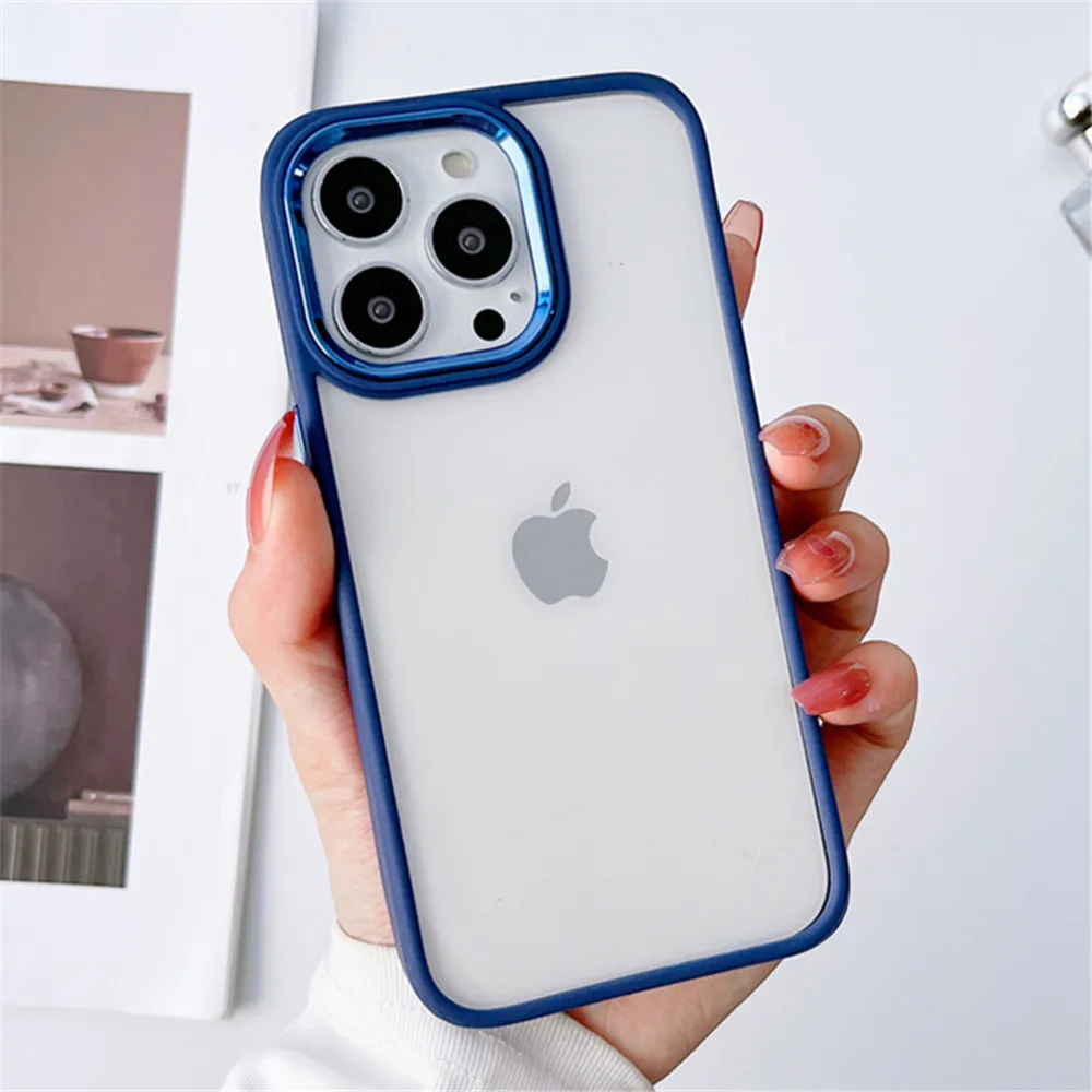 Funda de teléfono transparente con anillo de cámara de Metal de lujo para iPhone 14 13 12 11 Pro Max XR X XS 7 8 Plus, funda trasera transparente con parachoques de silicona