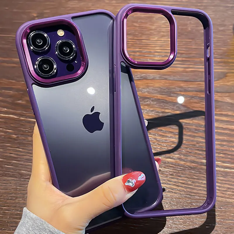 Comprar Funda de teléfono transparente con anillo de cámara de Metal de lujo para iPhone 14, 13, 12, 11 Pro Max, XR, X, XS, 7, 8 Plus, cubierta trasera transparente de silicona
