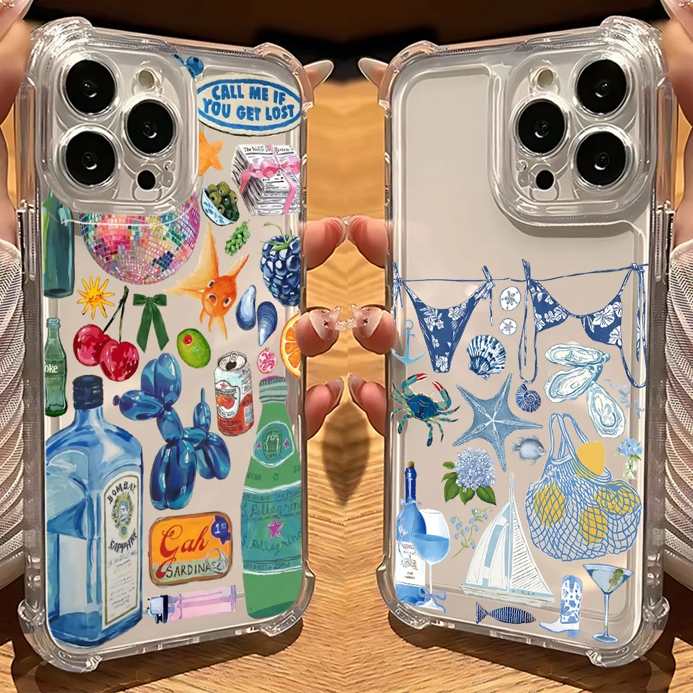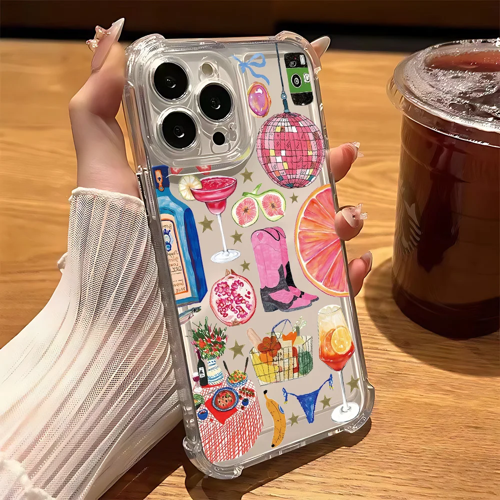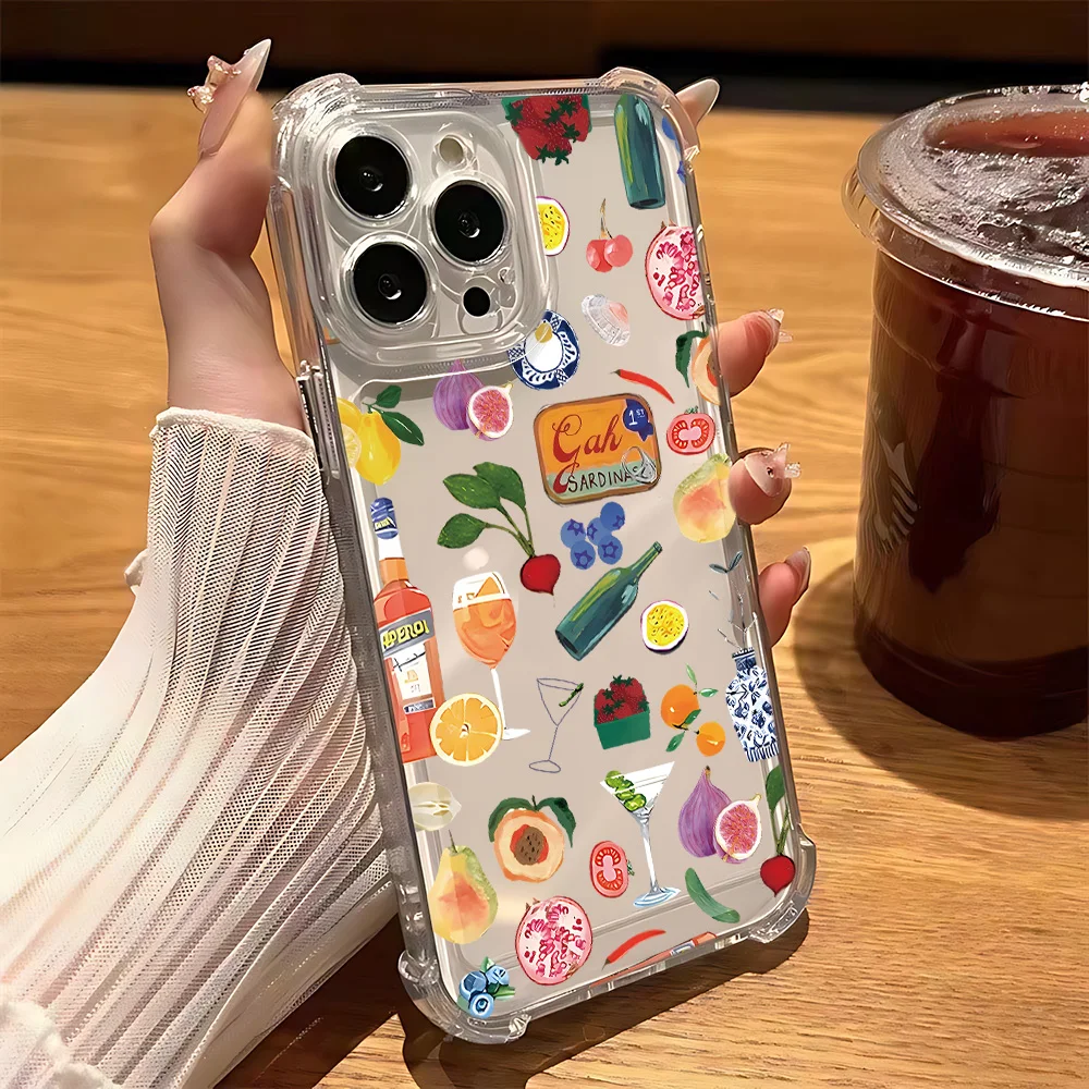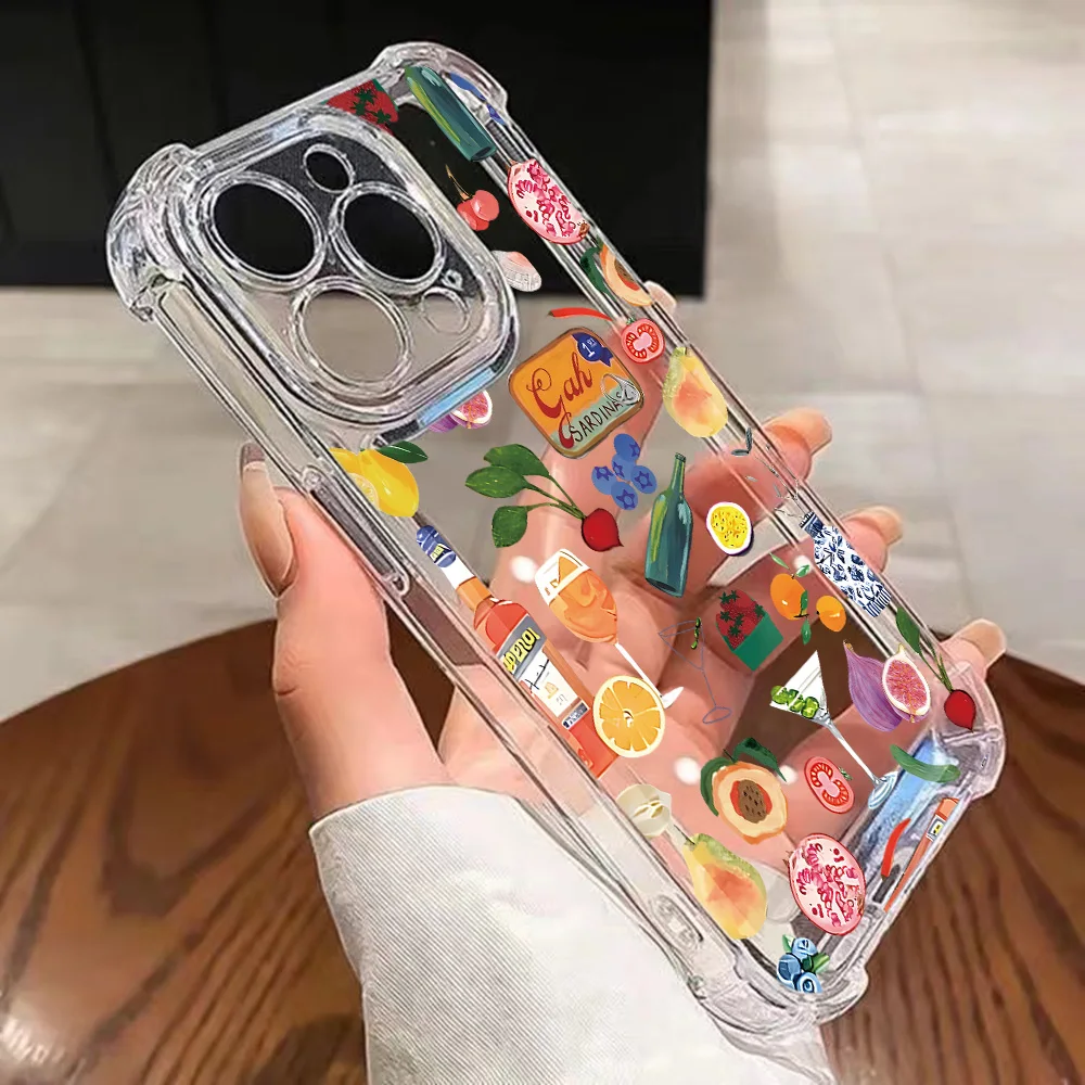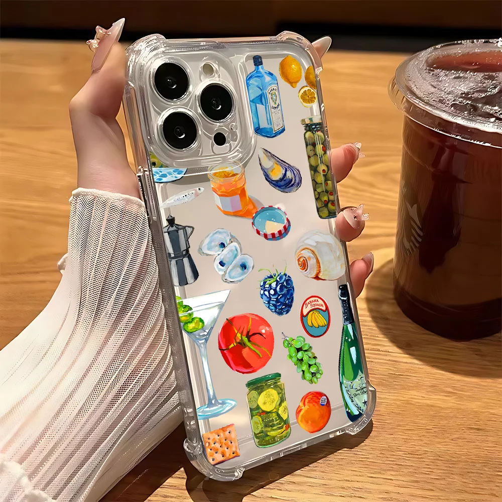 Comprar Funda de teléfono transparente anticaída con paisaje costero vino limón para Xiaomi Redmi 14C 13C 12C K50 K40 Note 14 13 12 11 10 9S Pro Plus 4G 5G