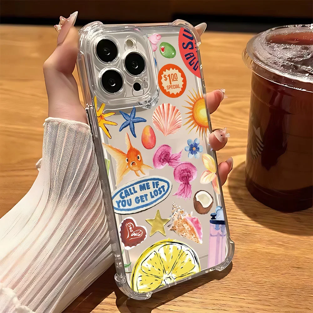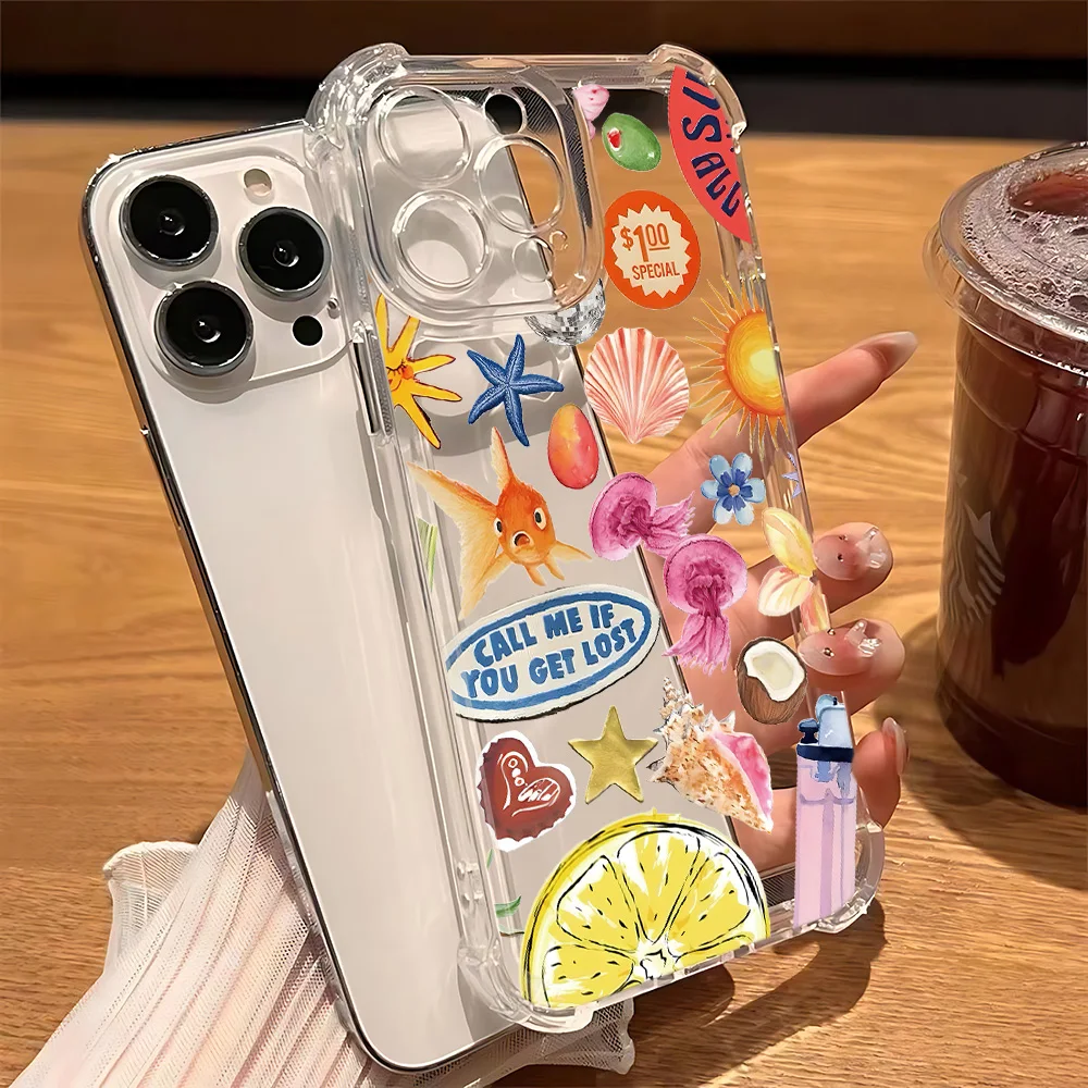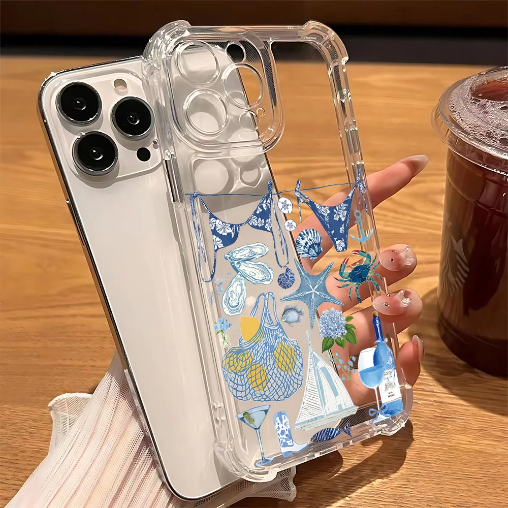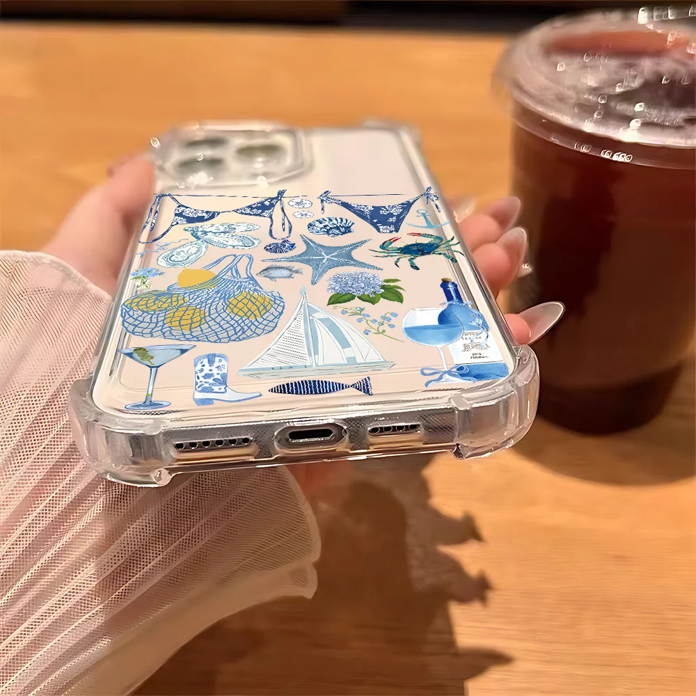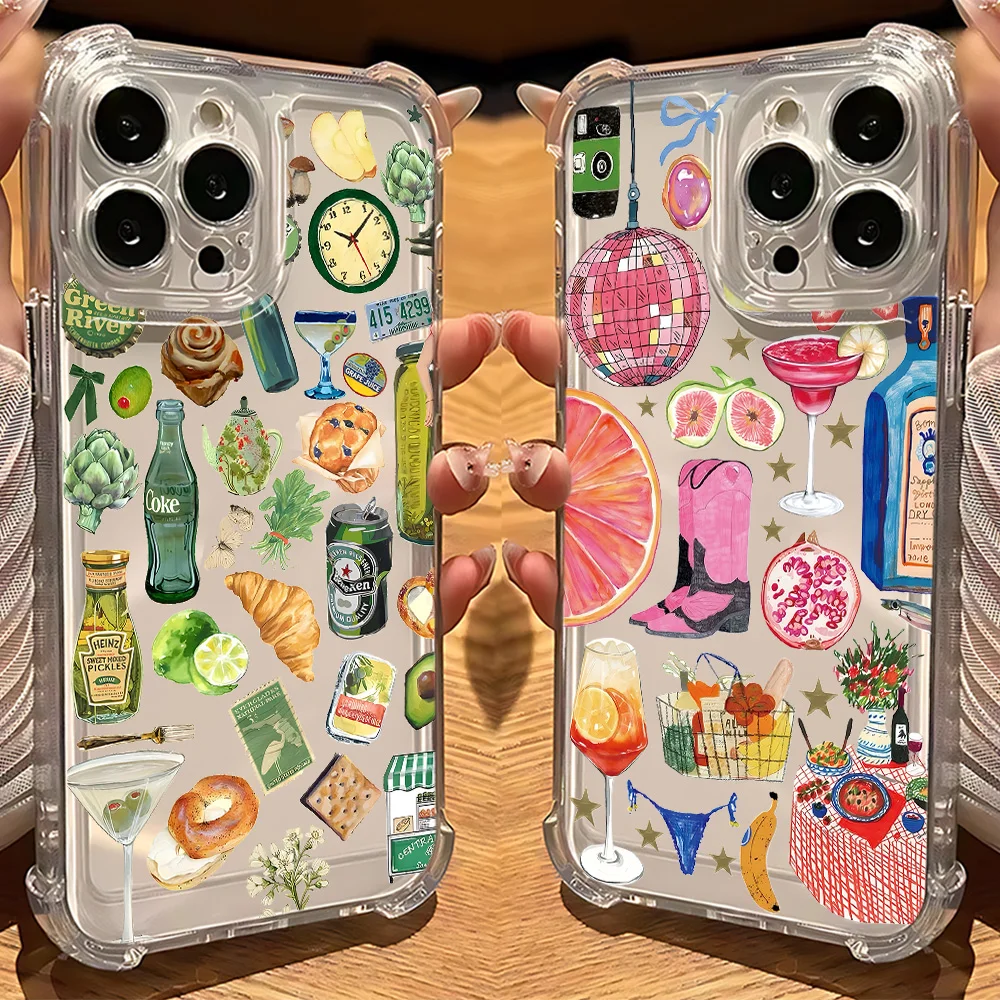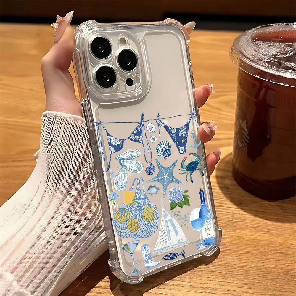 Comprar Funda de teléfono transparente anticaída con paisaje costero vino limón para Xiaomi Redmi 14C 13C 12C K50 K40 Note 14 13 12 11 10 9S Pro Plus 4G 5G