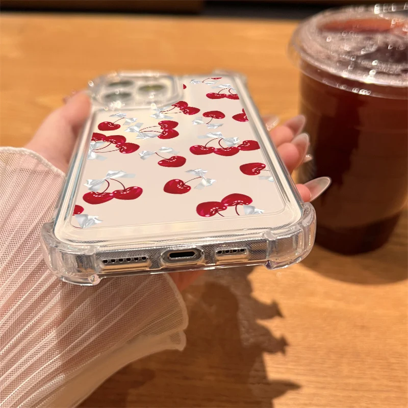 Funda de teléfono transparente con bonito lazo de cereza para iPhone 16 15 14 13 12 11 Pro Max 7 8 16 15 Plus X XR XS Max, funda suave transparente de silicona