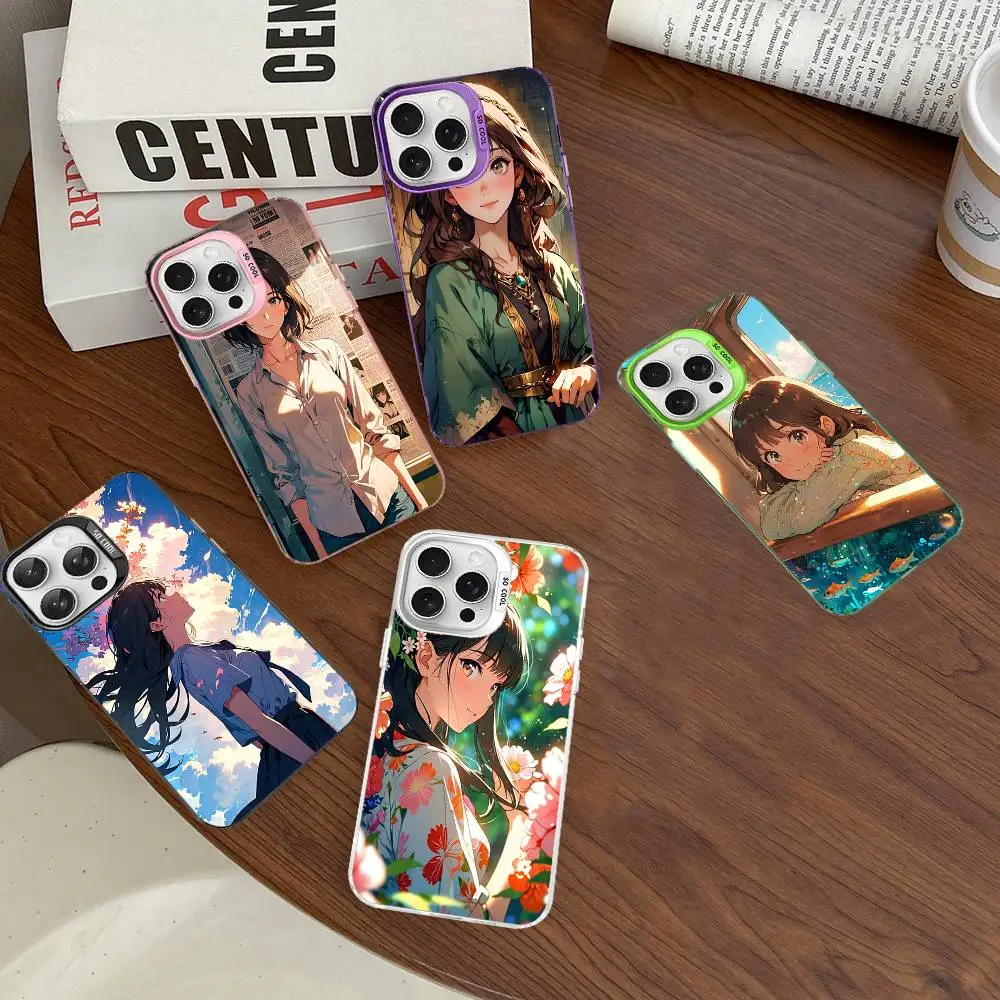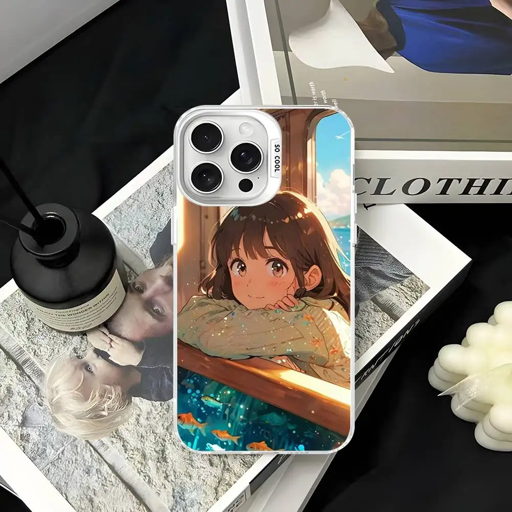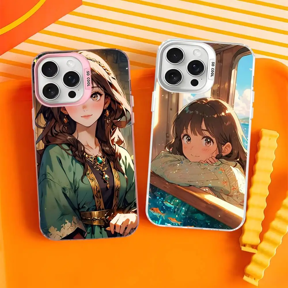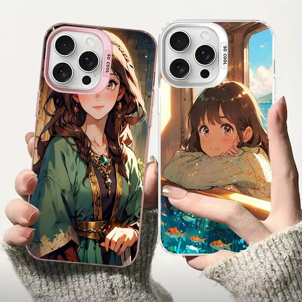 Comprar Funda de teléfono transparente con dibujos de chica INS para iPhone 16 15 14 13 12 11 Pro Max X XR XSMAX 8 7 Plus, funda trasera mate a prueba de golpes