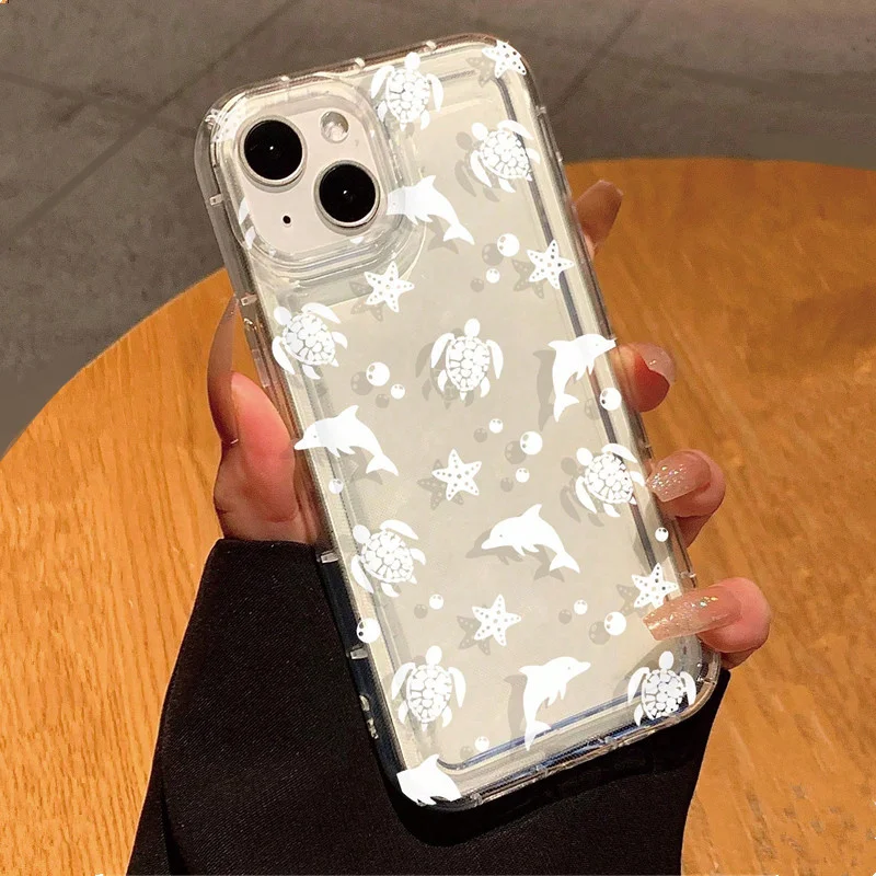 Funda de teléfono con patrón transparente de estrella de mar y delfín para iPhone 14 15 11 12 13 Pro Max XR X XS 7 8 Plus SE 2022 Funda de airbag antigolpes
