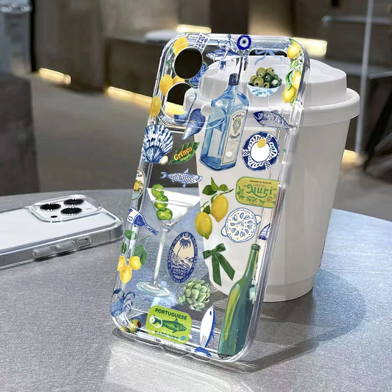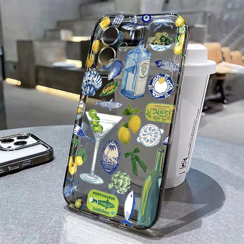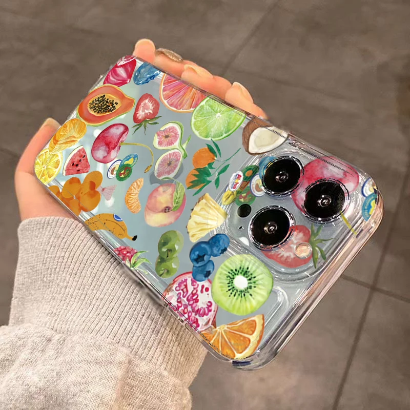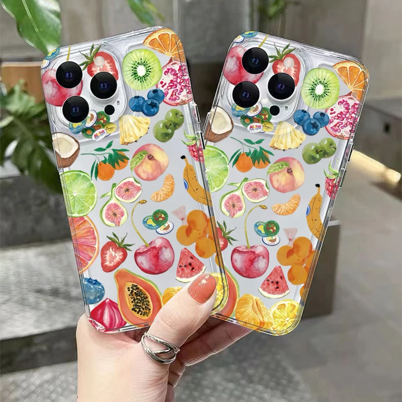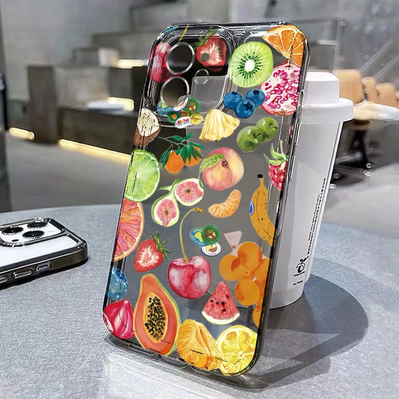 Funda de teléfono transparente con diseño de frutas de cobertura completa de TPU para iPhone 11 12 13 14 15 16 Pro Max XS X XR 7 8 Plus SE 2025 2020