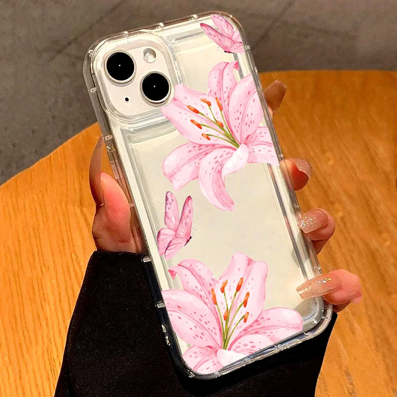 Funda de teléfono transparente con patrón de lirio rosa Ins para iPhone 16 16e 14 13 15 Pro Max 11 12 Pro Mini 7 8 Plus SE 2022 funda a prueba de golpes