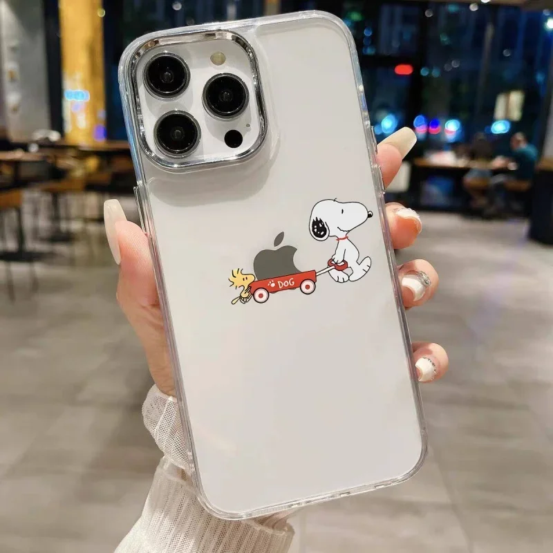 Funda de teléfono transparente con diseño de Snoopy para Iphone 16, 15, 13, 12, 11 Pro Max, 16E, 14 Plus, 13 Pro, XS Max, XR, 7, 8, SE, 2022, cubierta de lente de Metal