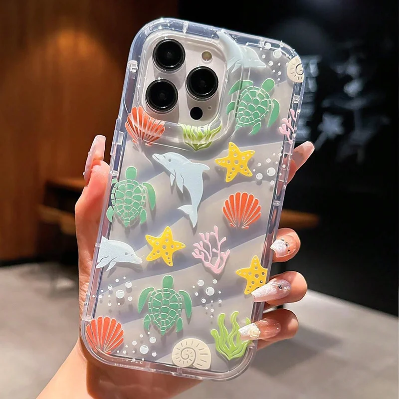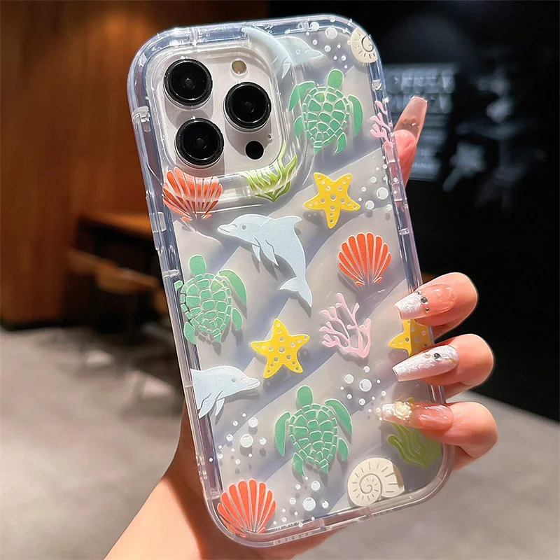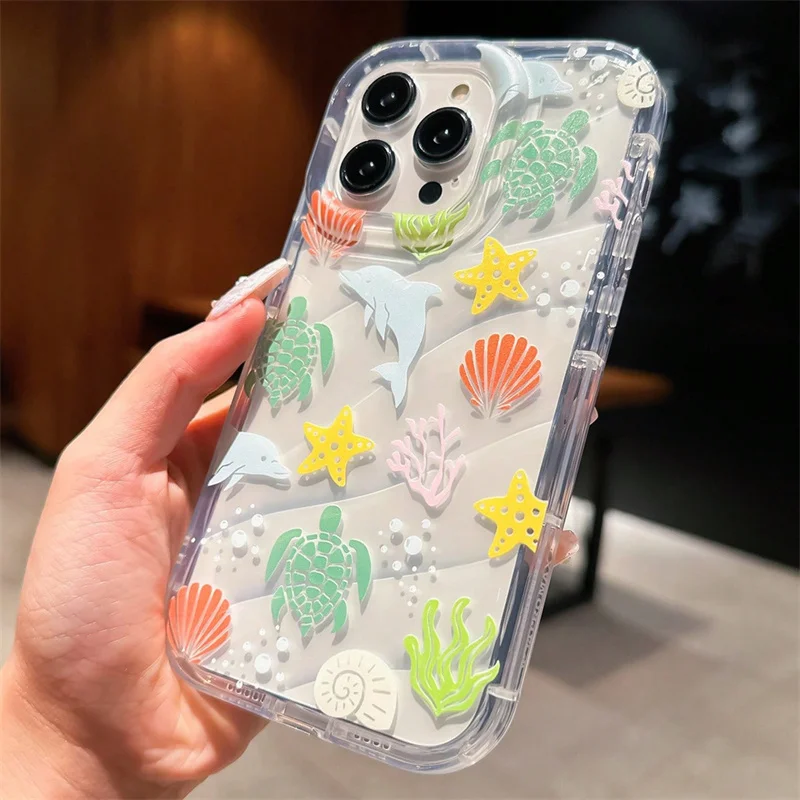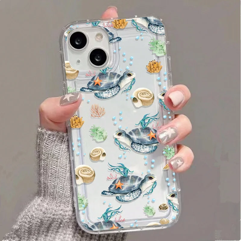 Cool Ocean Turtle Pattern Funda de teléfono transparente para iPhone 15 14 Pro Max 11 12 13 Pro 7 8 Plus X XR TPU Funda de absorción de impactos