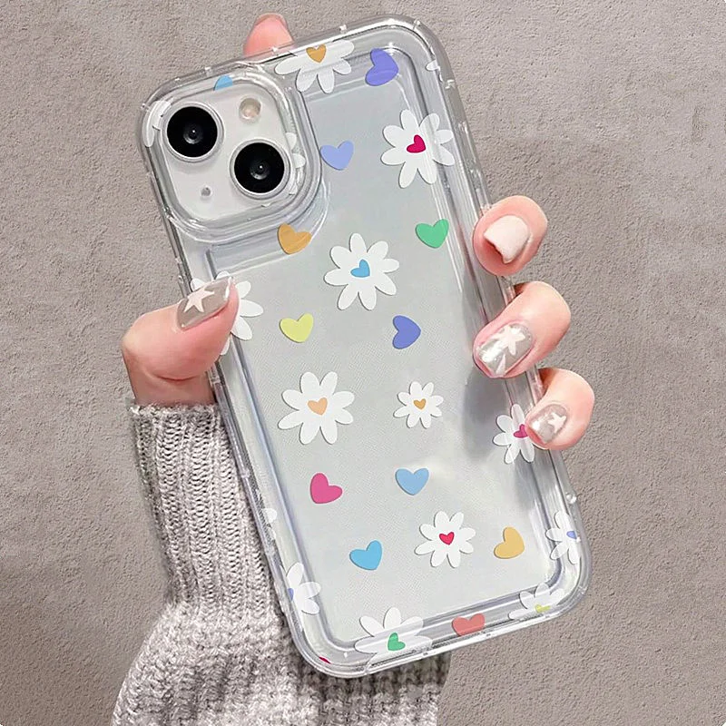 Comprar Funda de teléfono transparente con estampado de corazón y flores de dibujos animados Ins para Xiaomi POCO X3 Pro Mi 14 13T 12T 11T 13 12 11 Lite 5G NE