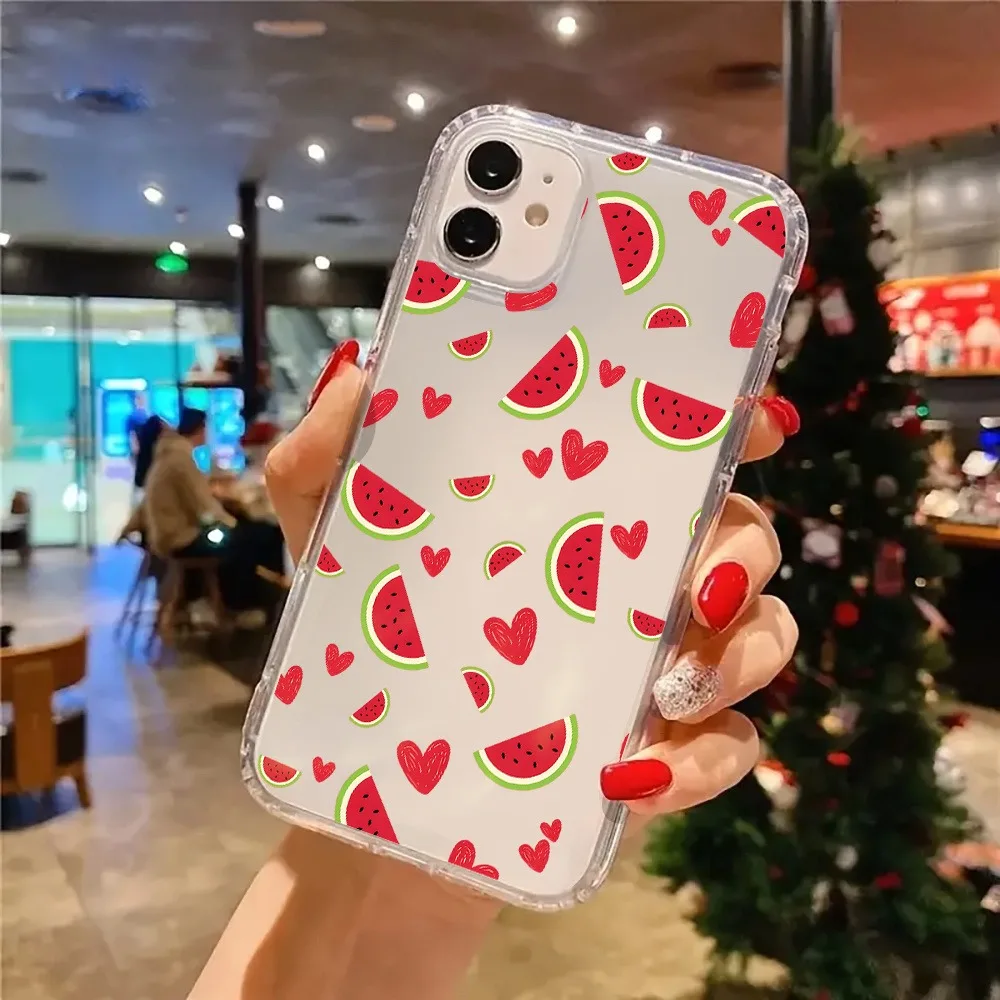 Funda de teléfono transparente estética con diseño de sandía y corazón dulce para iPhone 17 16 11 12 13 14 15 Pro Max 16 Plus XR XS X 7 8 17 Air Funda