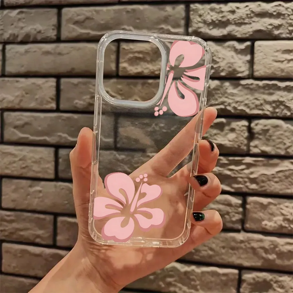 Funda de teléfono transparente estética minimalista con flor rosa adecuada para iPhone 17 16 11 12 13 14 15 Pro Max Plus XR XS X 7 8