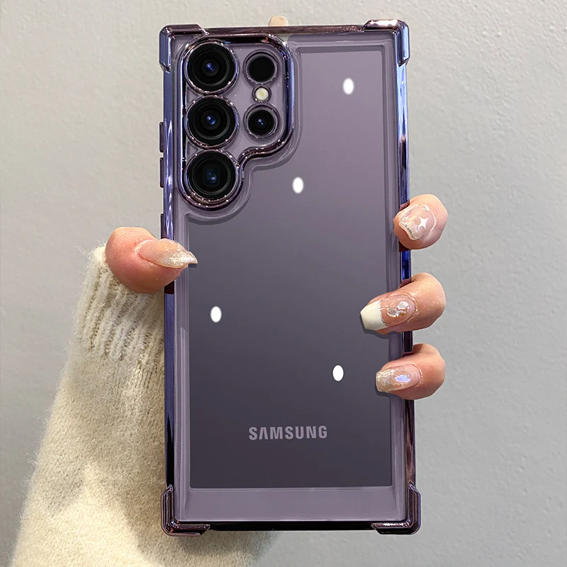 Funda de teléfono transparente HD chapada de lujo para Samsung Galaxy S24 S23 FE S22 Ultra Plus 5G armadura a prueba de golpes cubierta dura de parachoques suave