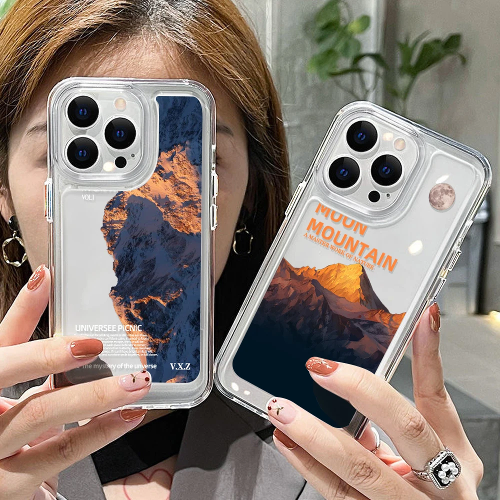 Funda de teléfono transparente para iPhone 11, Funda para iPhone 13 14 15 Pro Max 12 XR Xs 7 8 Plus 13pro 15pro, fundas de silicona para pico de montaña