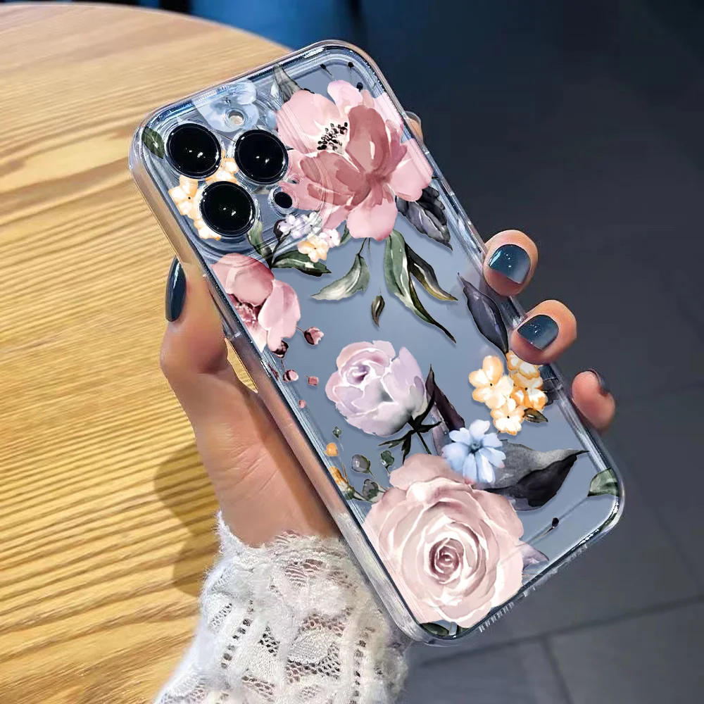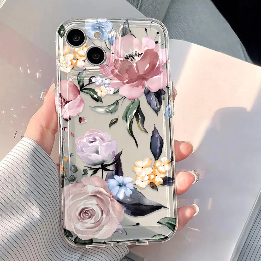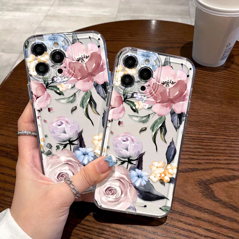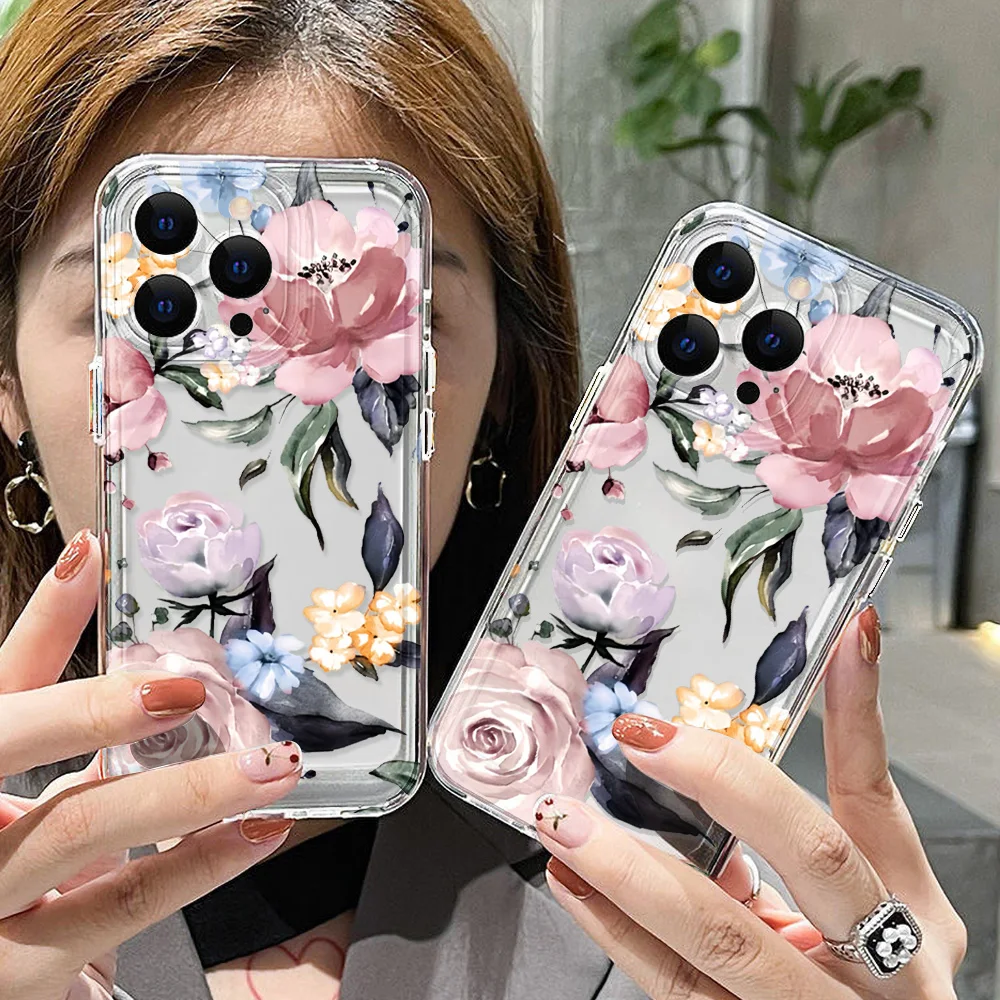 Funda de teléfono transparente para iPhone 17 Pro Max 16 13 11 15 14 Plus 12 17 Air 16E 17Promax Funda de silicona a prueba de golpes con flores