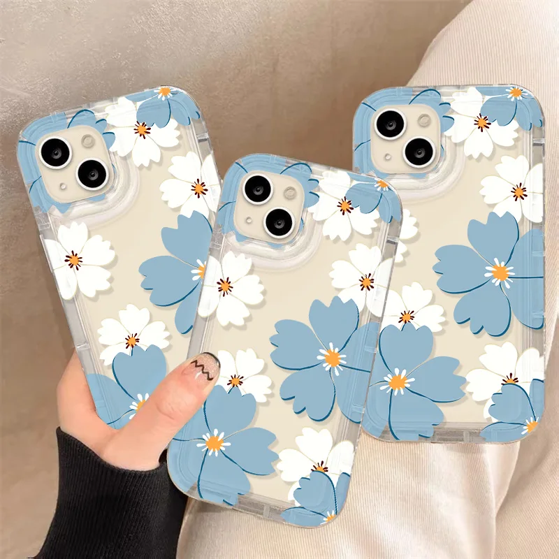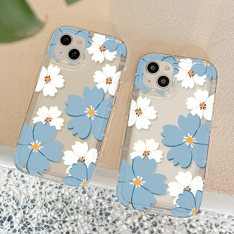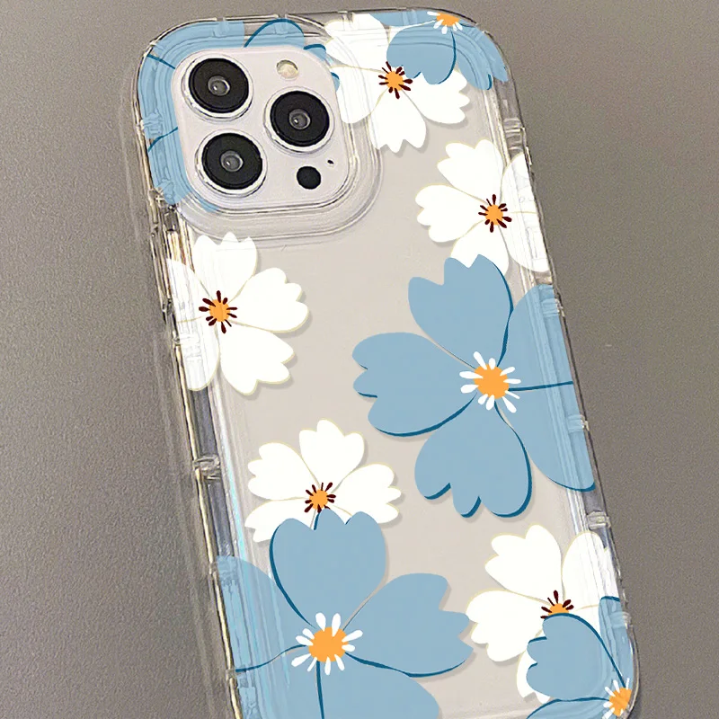 Comprar Funda de teléfono transparente para iPhone, carcasa de silicona con flores para modelos 15, 11, 13, 14, 12 Pro Max, XR, X, XS, 7, 8 Plus, 15Pro Max, 13Pro Max, 6 SE, 2020