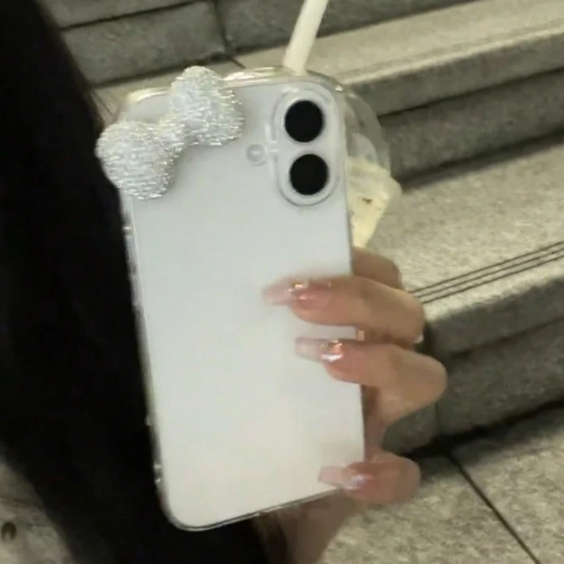 Funda de teléfono transparente con lazo y diamantes ostentosos 3D de lujo para iPhone 16 15 14 13 11 12 Pro Max 7 8 Plus X XR XS, bonita funda suave