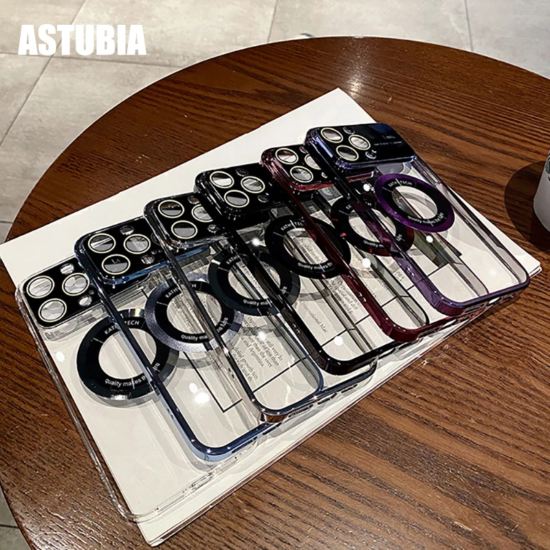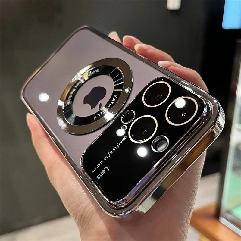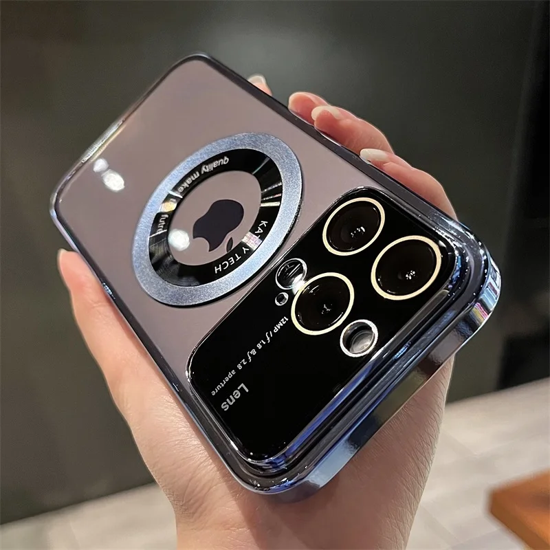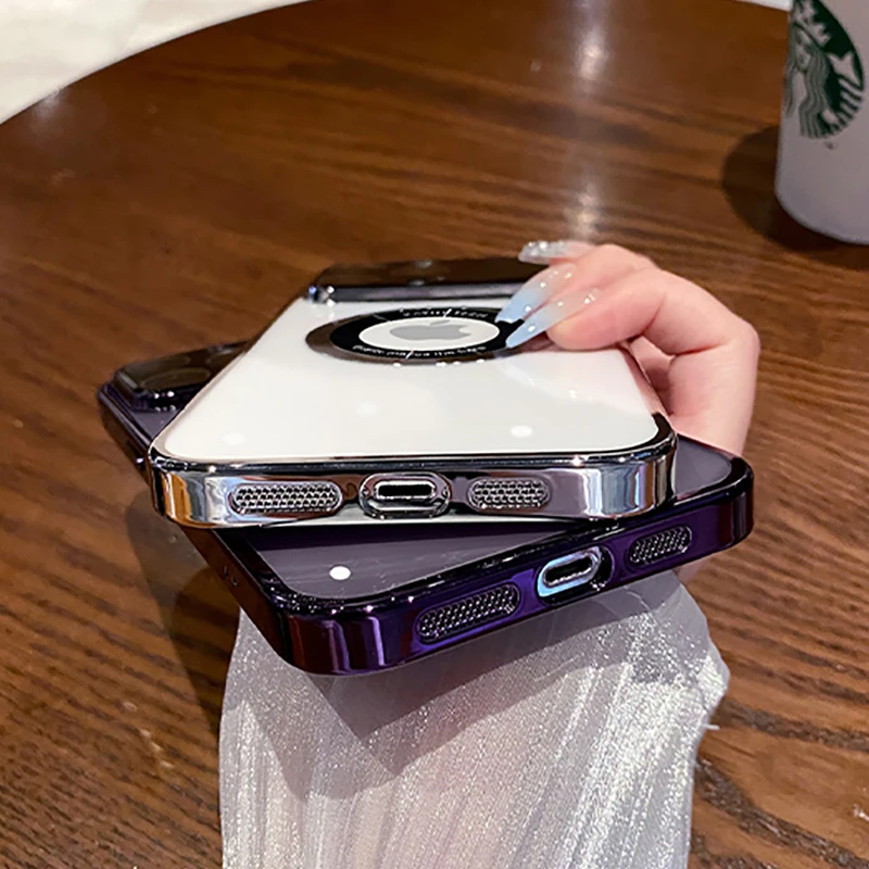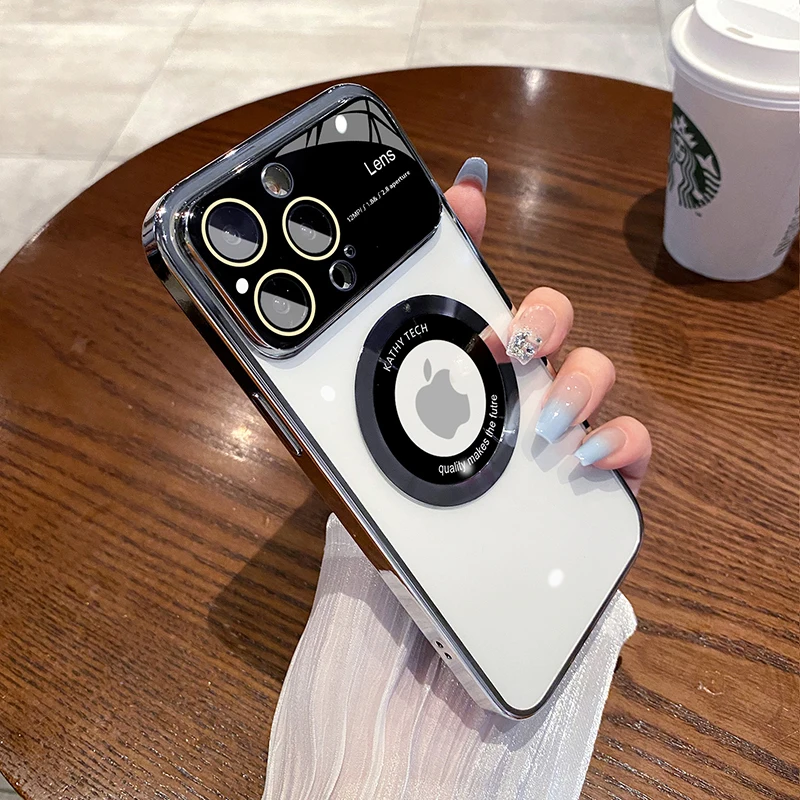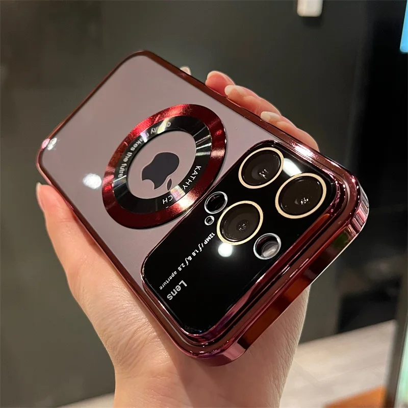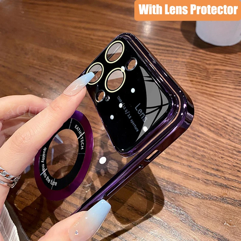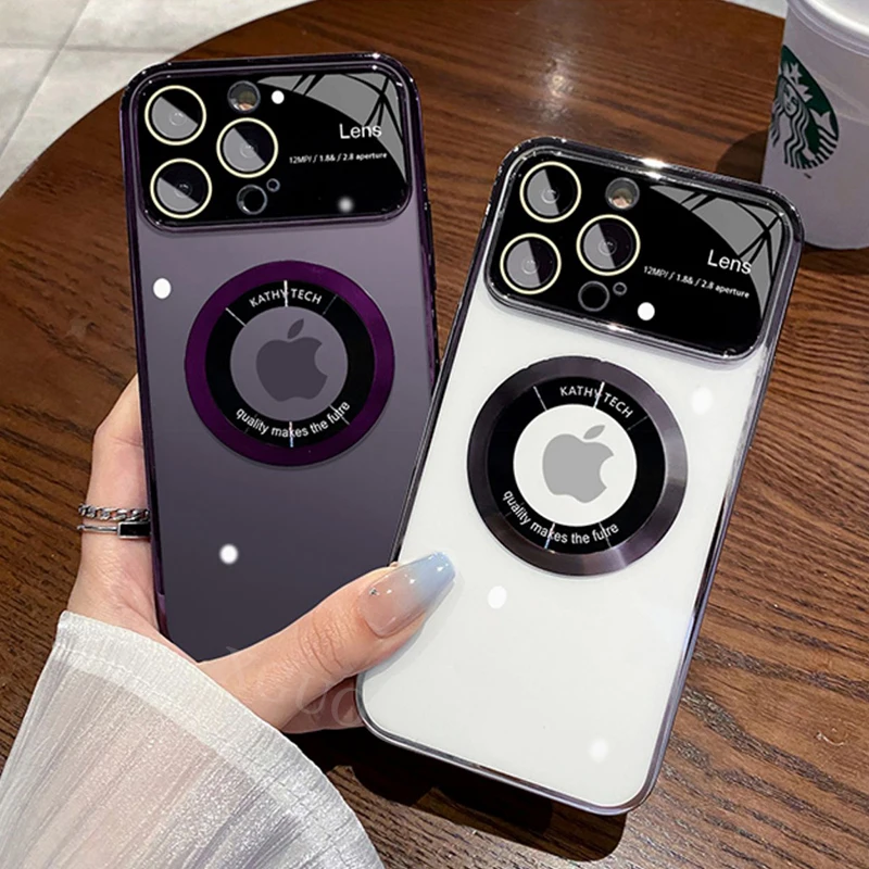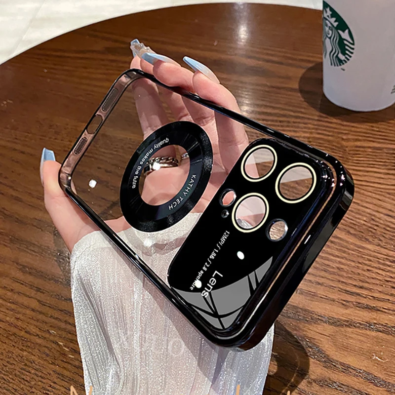 Funda de teléfono transparente con lente de cristal magnético de lujo para iPhone 14 13 11 12 Pro Max XR XS Max 7 8 Plus para Magsafe Bumper Hard PC Cover
