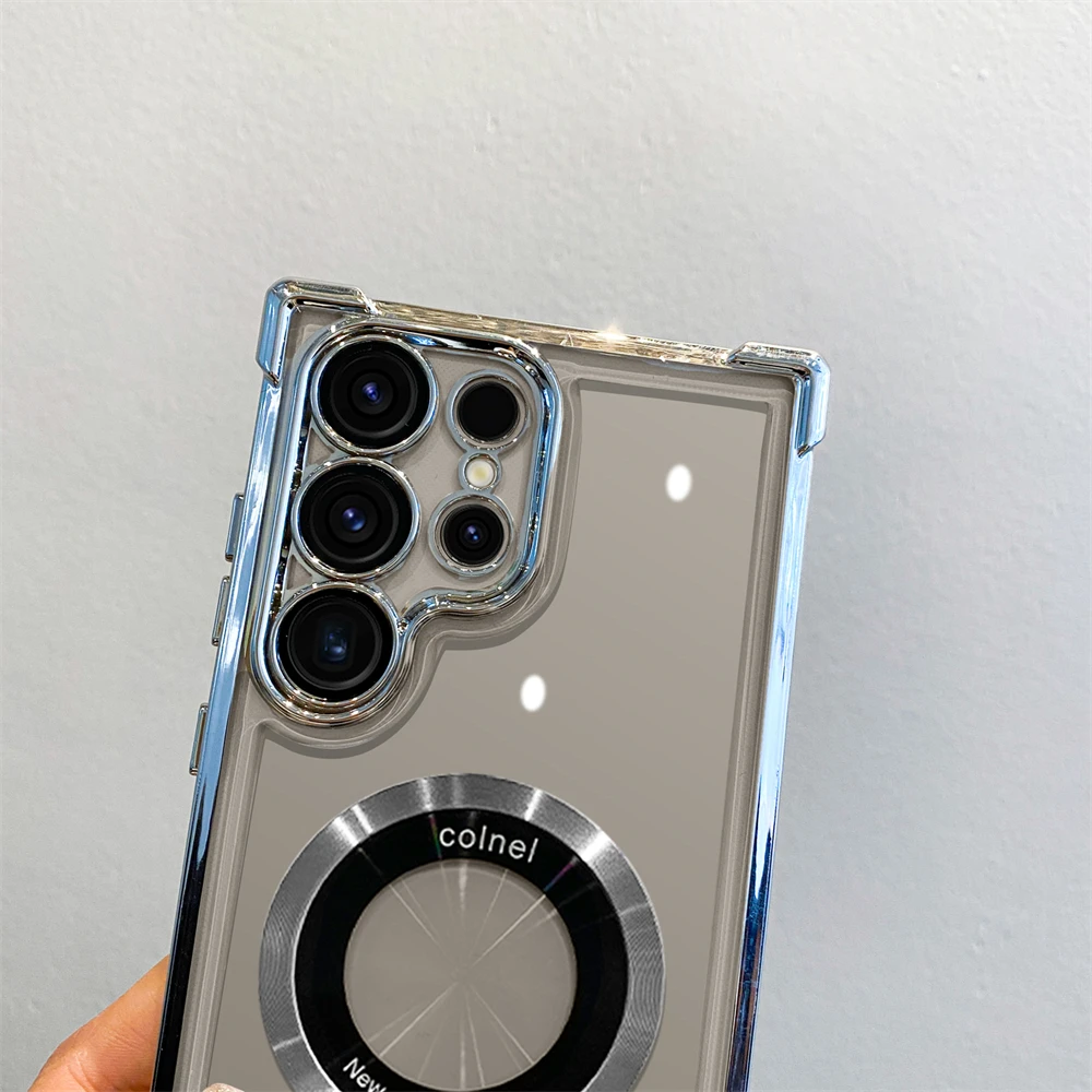 Original Plating Magnetic Transparent Phone Case for Samsung Galaxy S25 S24 Ultra S23 Fe S22 Plus S21 Note 20 Clear Back Cover