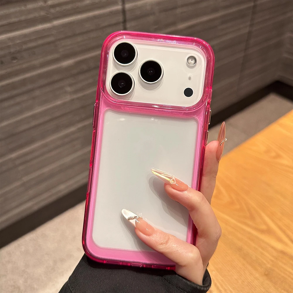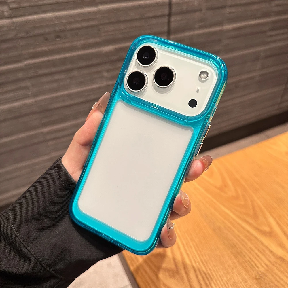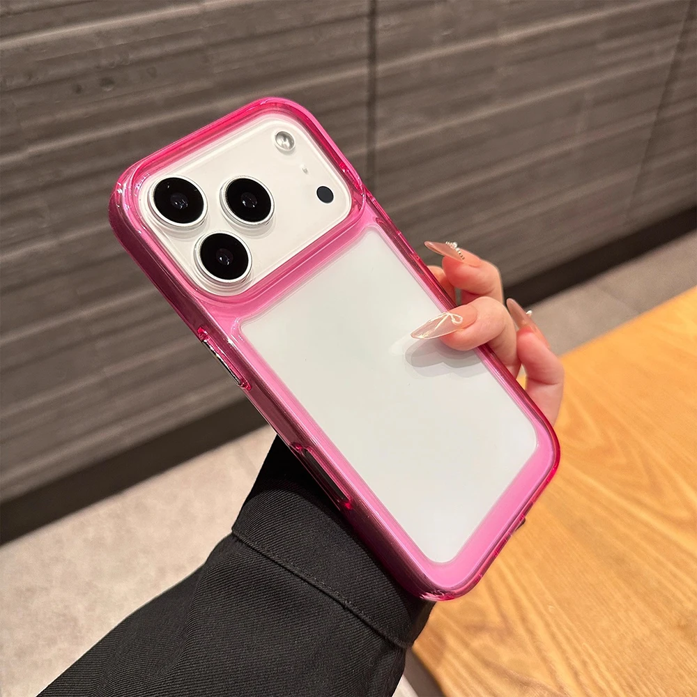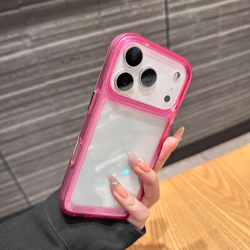 Funda de teléfono transparente con marco a prueba de golpes Simple para iPhone 11 12 13 14 16 15 17 Pro Max Air 16 Plus, funda protectora trasera con parachoques