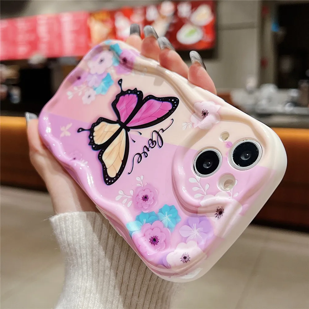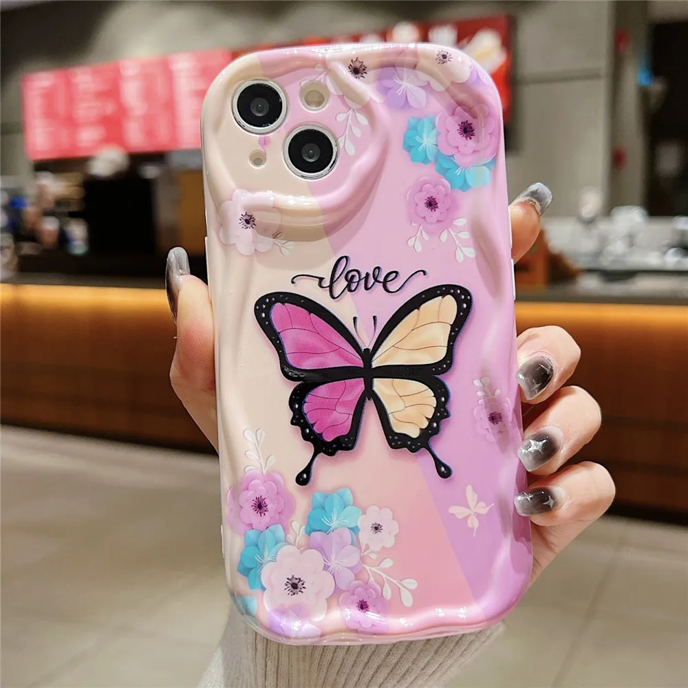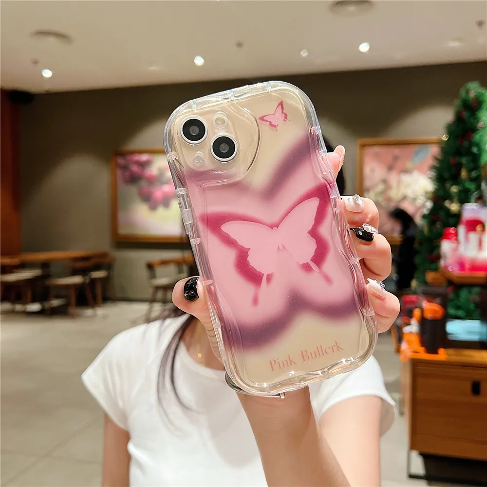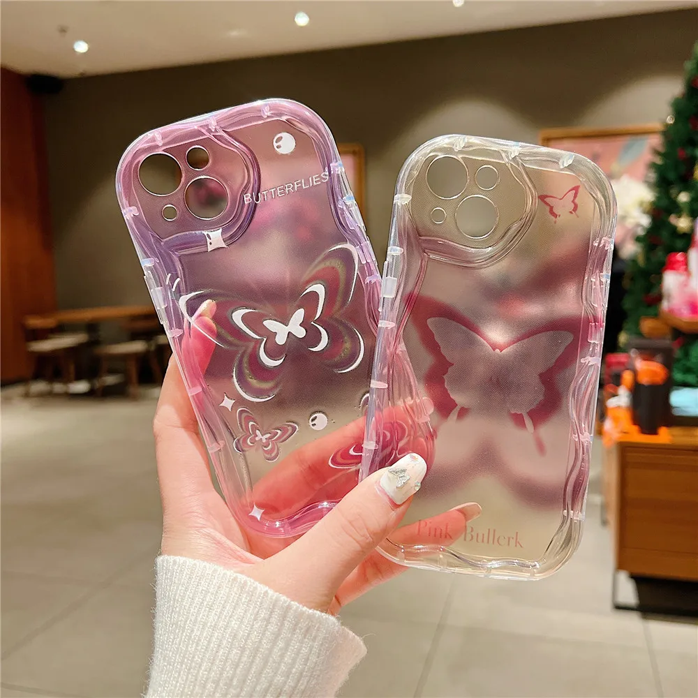 Funda de teléfono transparente ondulada de mariposa degradada bonita coreana para iPhone 15 11 13 14 12 Pro Max XS Max X XR 7 8 Plus, funda blanda de silicona