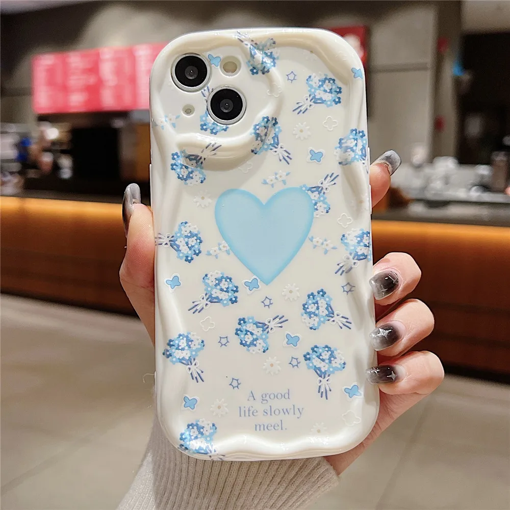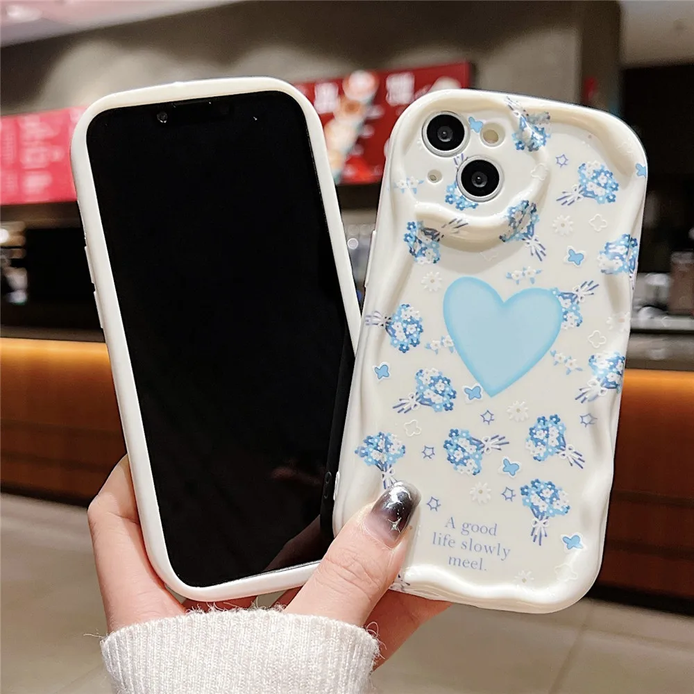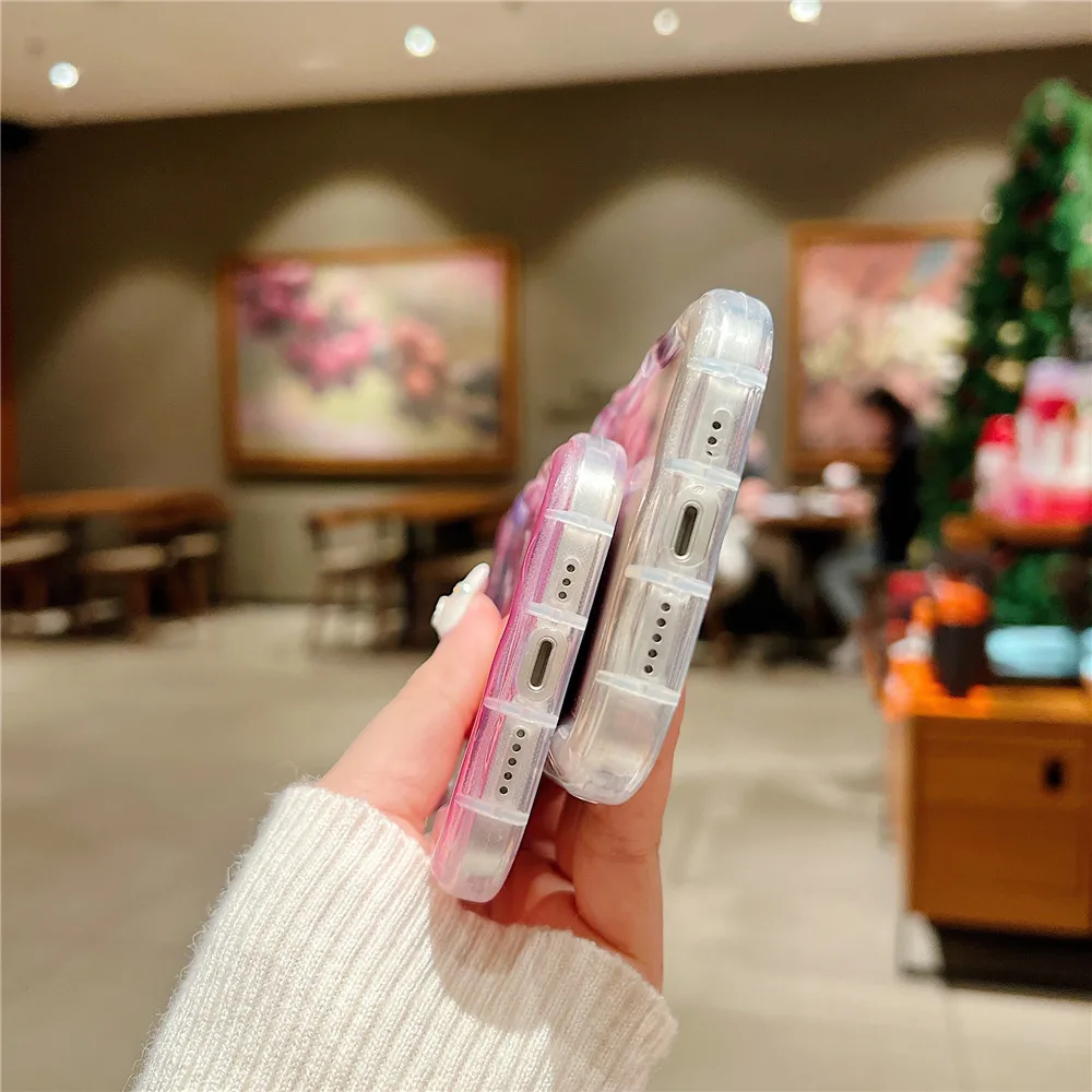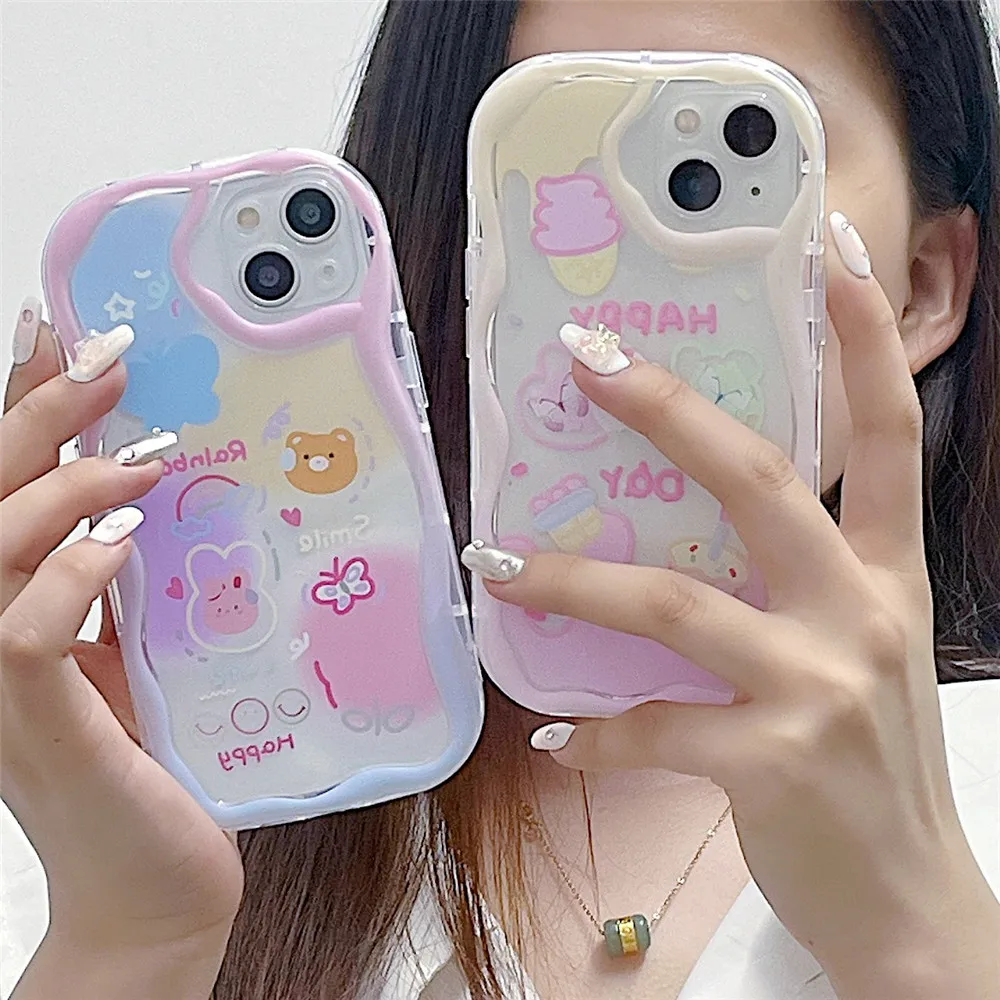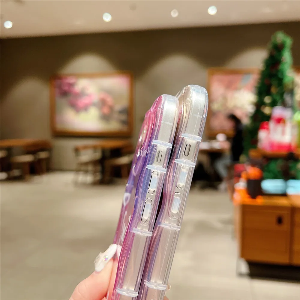Funda de teléfono transparente ondulada de mariposa degradada bonita coreana para iPhone 15 11 13 14 12 Pro Max XS Max X XR 7 8 Plus, funda blanda de silicona