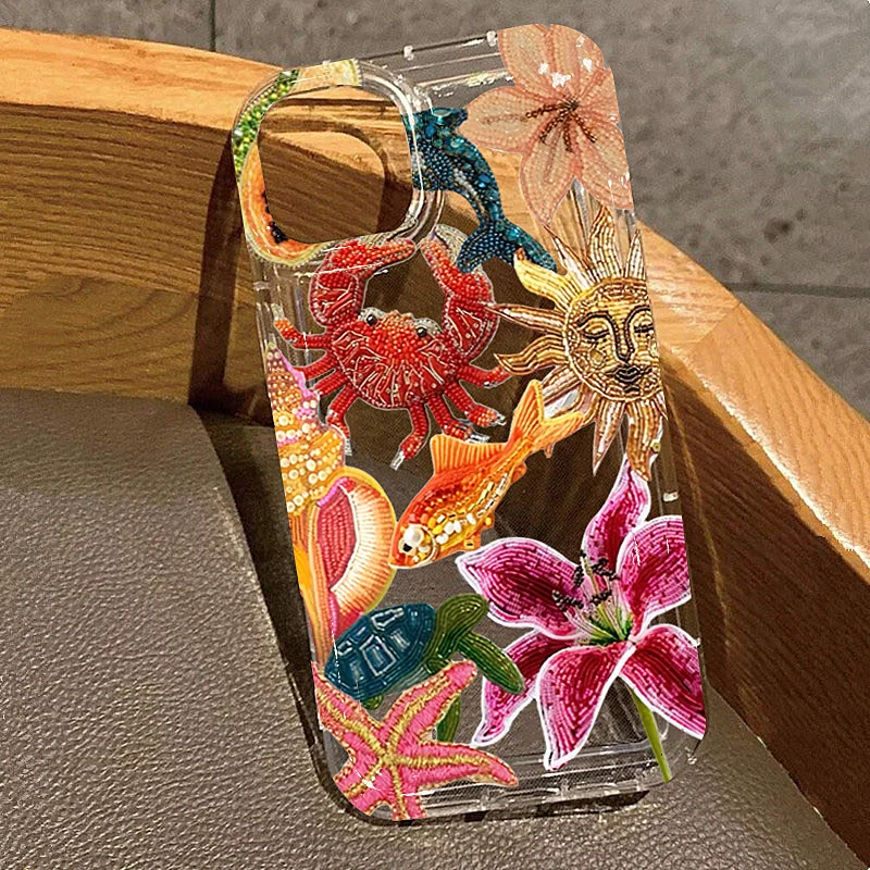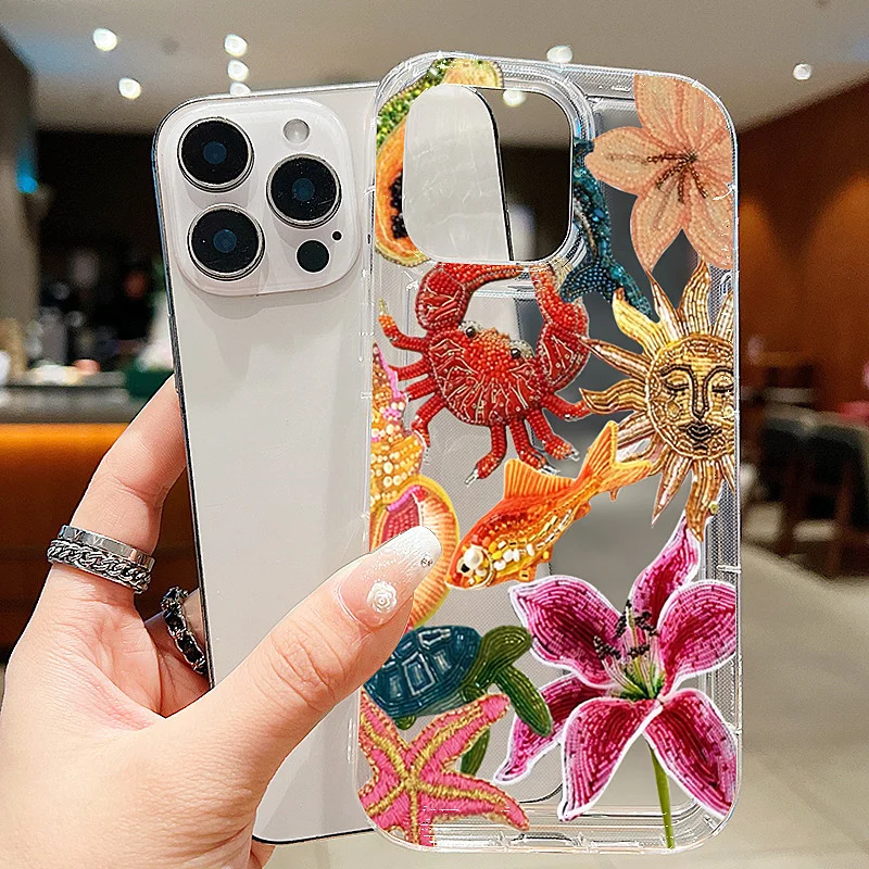 Funda de teléfono con ojos florales marinos Clear Sun para IPhone 16 15 14 13 12 11 Pro Max X XR XSMAX 7 8 Plus, funda trasera de TPU suave anticaída