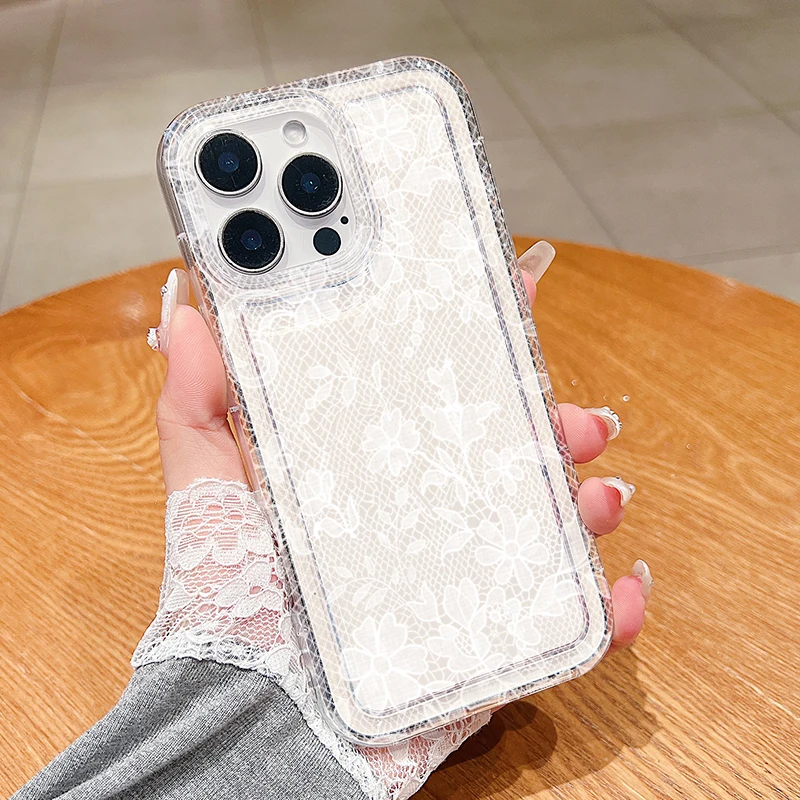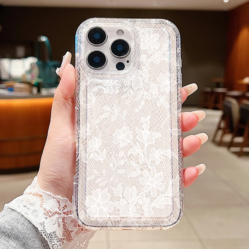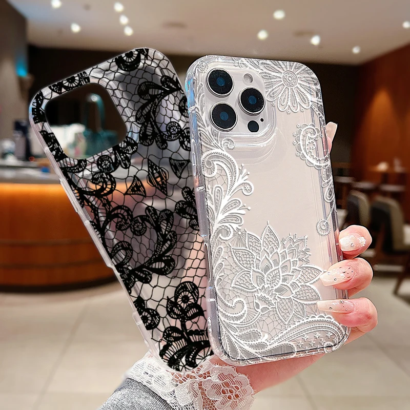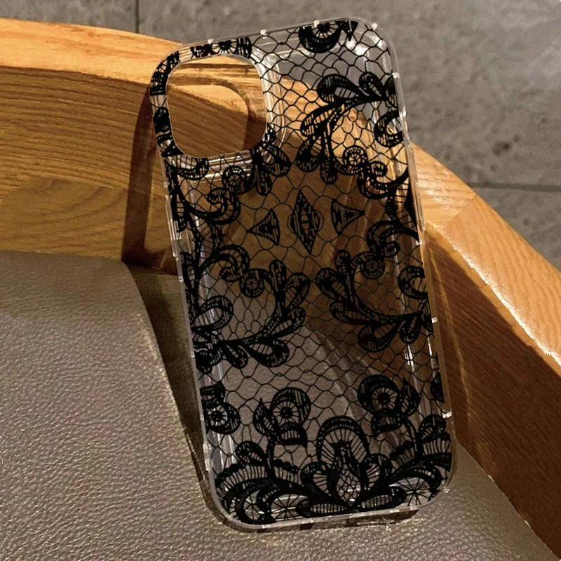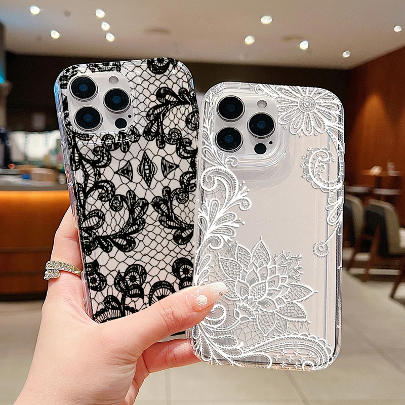 Funda de teléfono transparente con patrón de encaje Sexy para Xiaomi Redmi Note 13, 12, 11 Pro Plus, Redmi 13C, 12C, 13, 12, 5G, 4G, funda de silicona suave