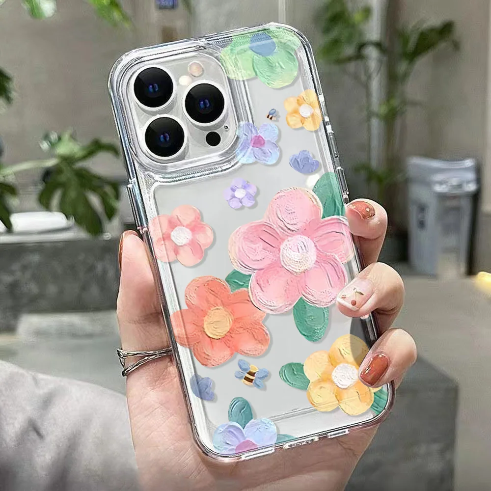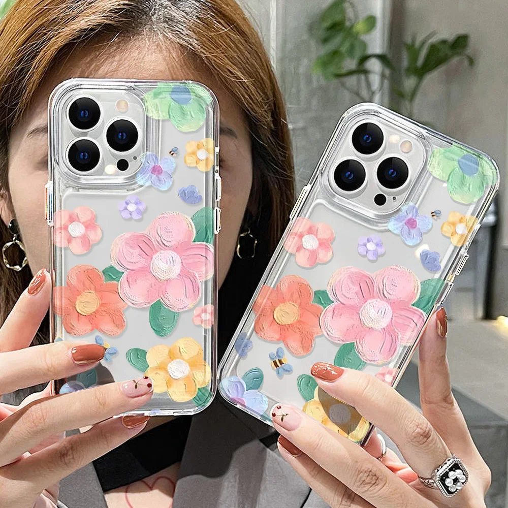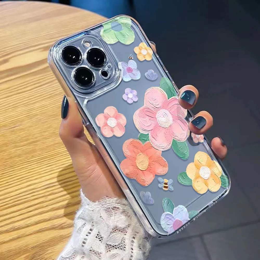 Comprar Funda de teléfono transparente pintada con flores para iPhone 13, 11, 16 Pro Max, 15, 14, 12, 16promax, 15promax, Funda de silicona suave a prueba de golpes