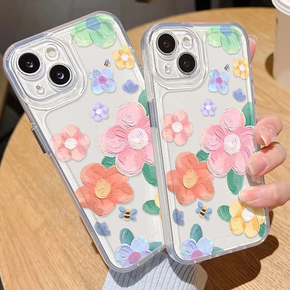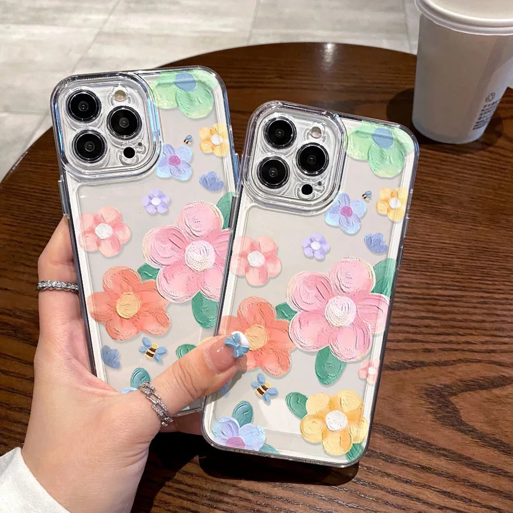 Funda de teléfono transparente pintada con flores para iPhone 13 11 16 Pro Max 15 14 12 16promax 15promax funda de silicona suave a prueba de golpes