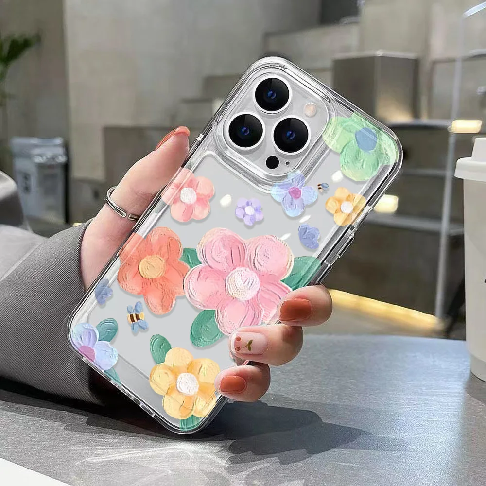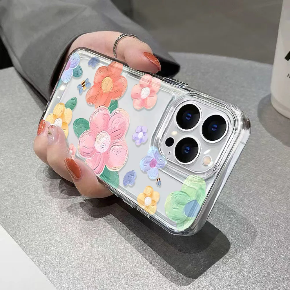 Funda de teléfono transparente pintada con flores para iPhone 13 11 16 Pro Max 15 14 12 16promax 15promax funda de silicona suave a prueba de golpes