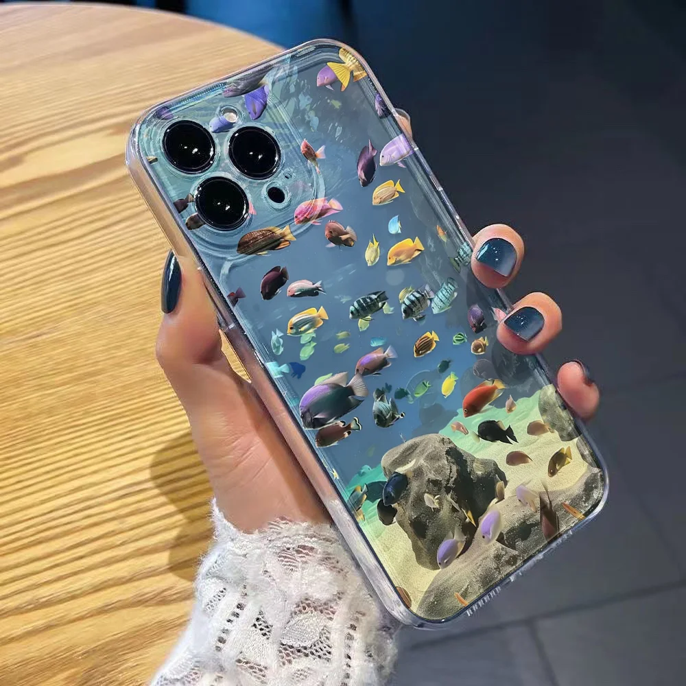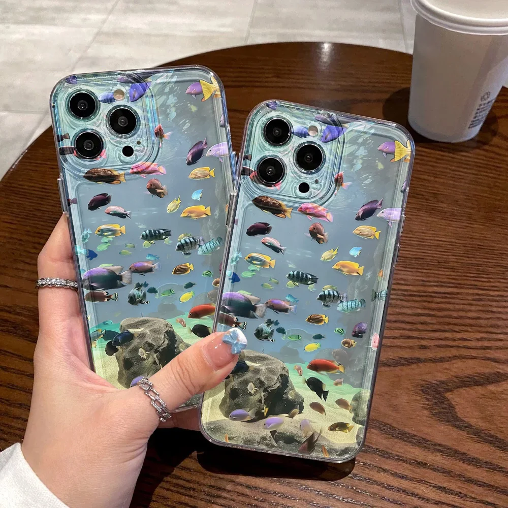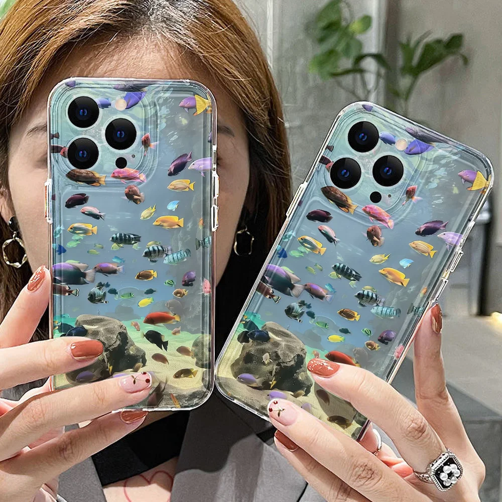 Funda de teléfono transparente pintada con pez para iPhone 11 13 15 16 Pro Max 14 12 16promax 15promax Funda de silicona suave a prueba de golpes