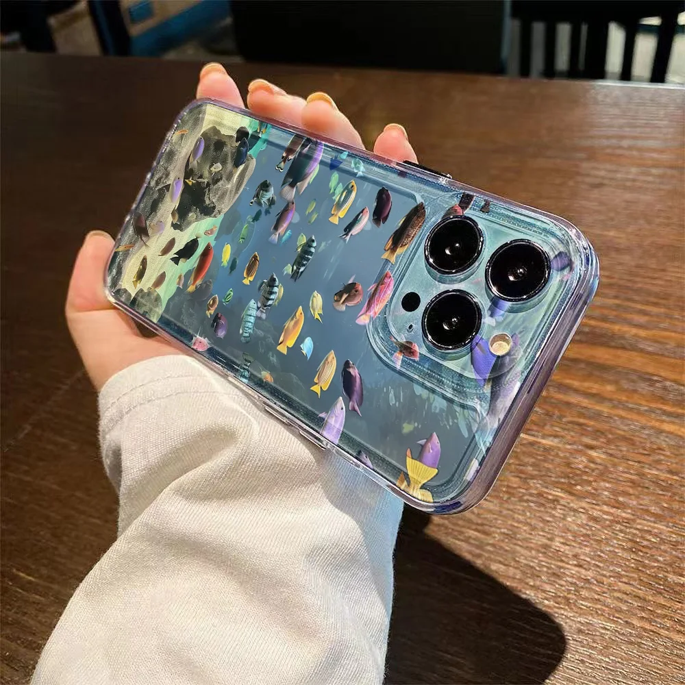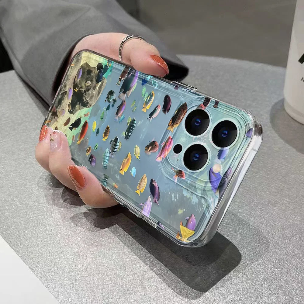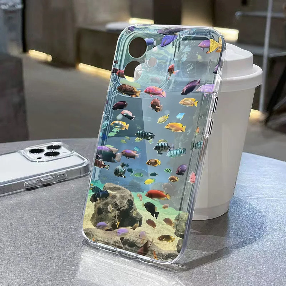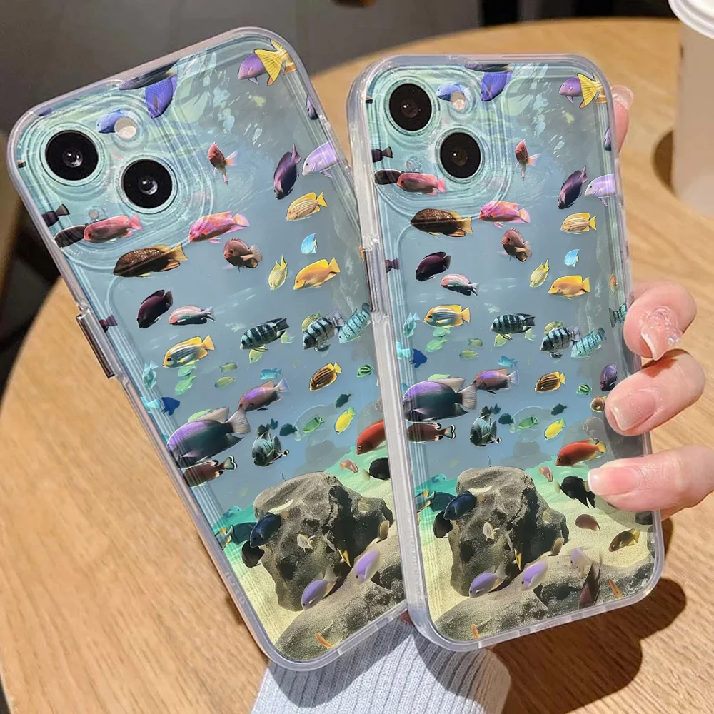 Funda de teléfono transparente pintada con pez para iPhone 11 13 15 16 Pro Max 14 12 16promax 15promax Funda de silicona suave a prueba de golpes