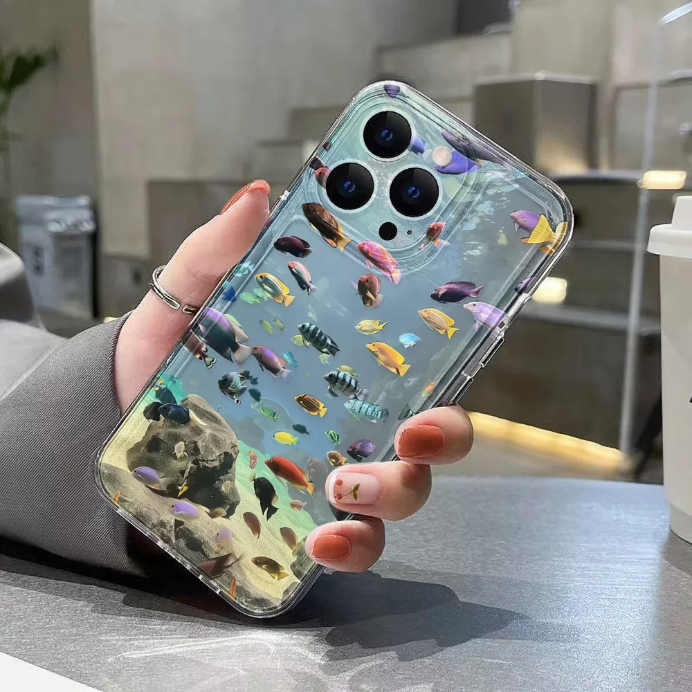 Comprar Funda de teléfono transparente pintada con peces para iPhone 11 13 15 16 Pro Max 14 12 16promax 15promax Funda de silicona suave a prueba de golpes