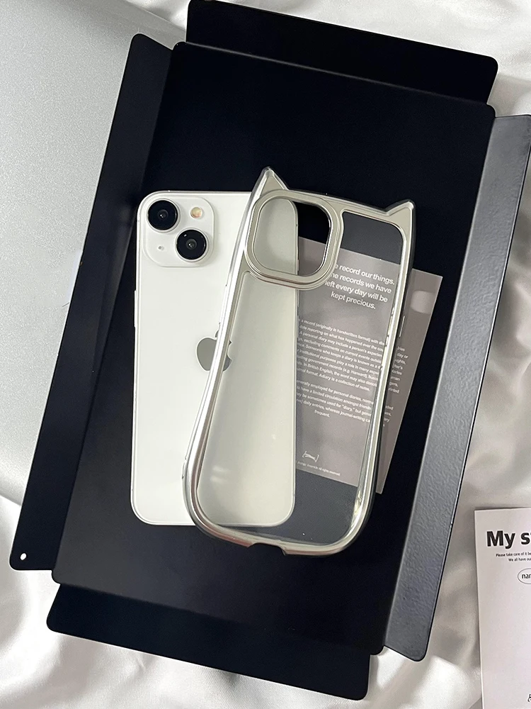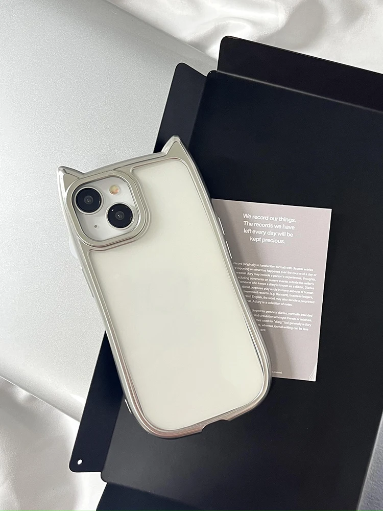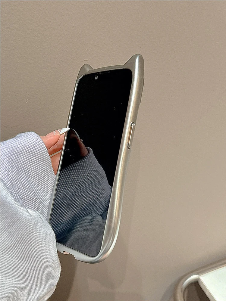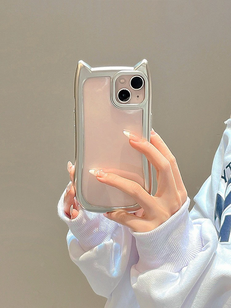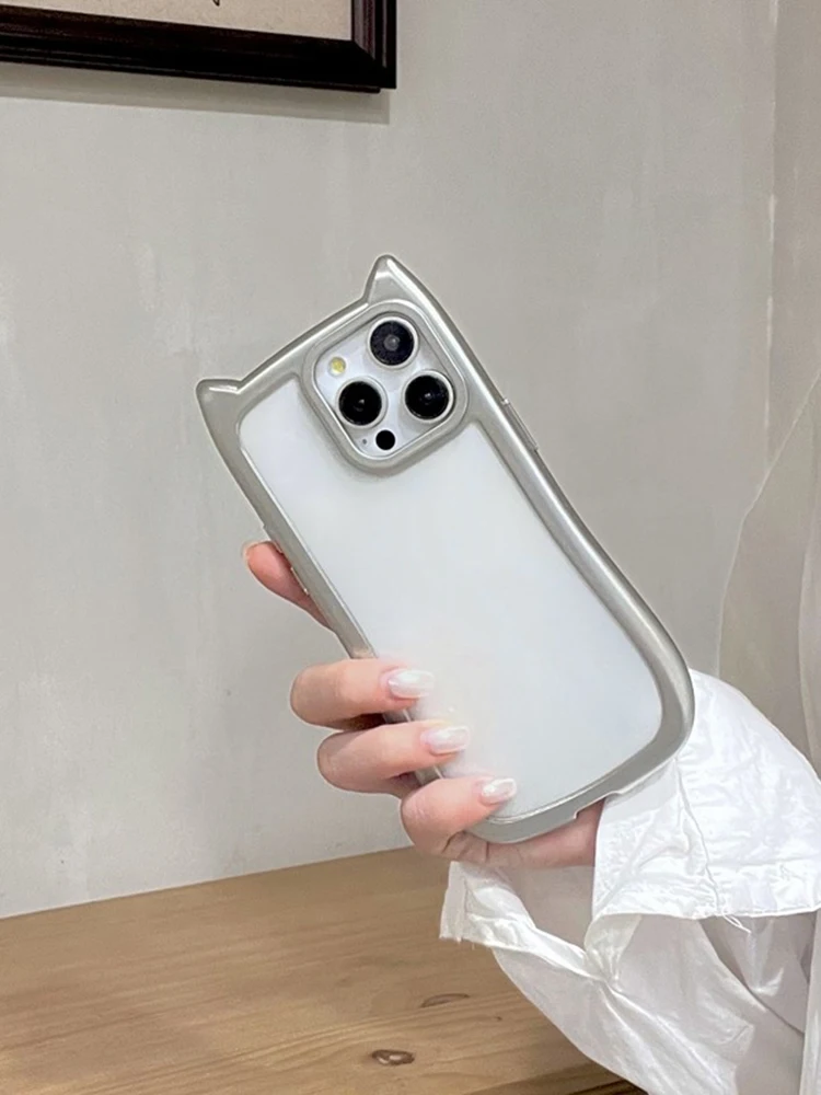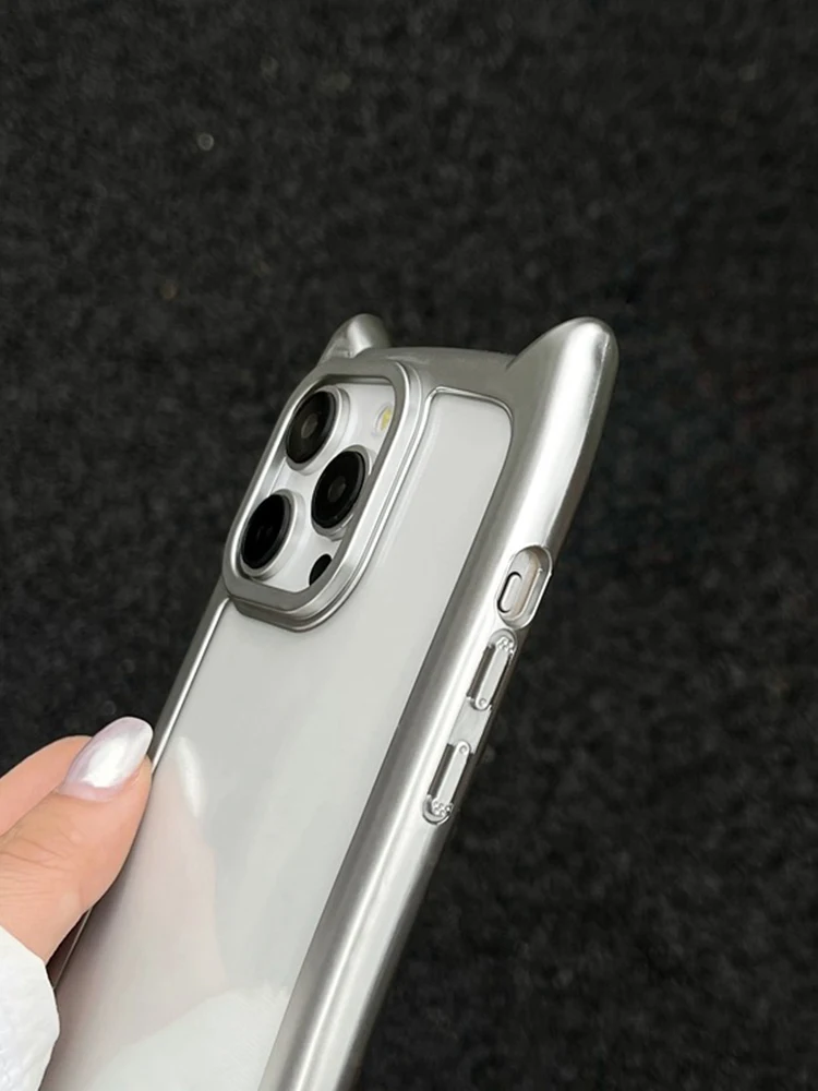 Funda de teléfono transparente plateada con orejas de gato 3D bonita de dibujos animados para iPhone Air 15 14 13 12 16 17 Pro Max