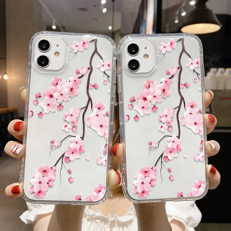 Funda de teléfono transparente Plum Bossom para iPhone 11 Fundas iPhone 17 Pro Max 11 16 15 14 12 Air 17promax funda de silicona a prueba de golpes
