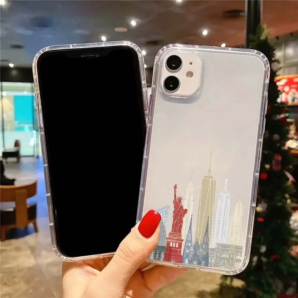 Funda de teléfono transparente Preppy estética de Nueva York City para iPhone 17 16 Pro Max 11 12 13 14 15 7 8 Plus XR XS XR Funda dura
