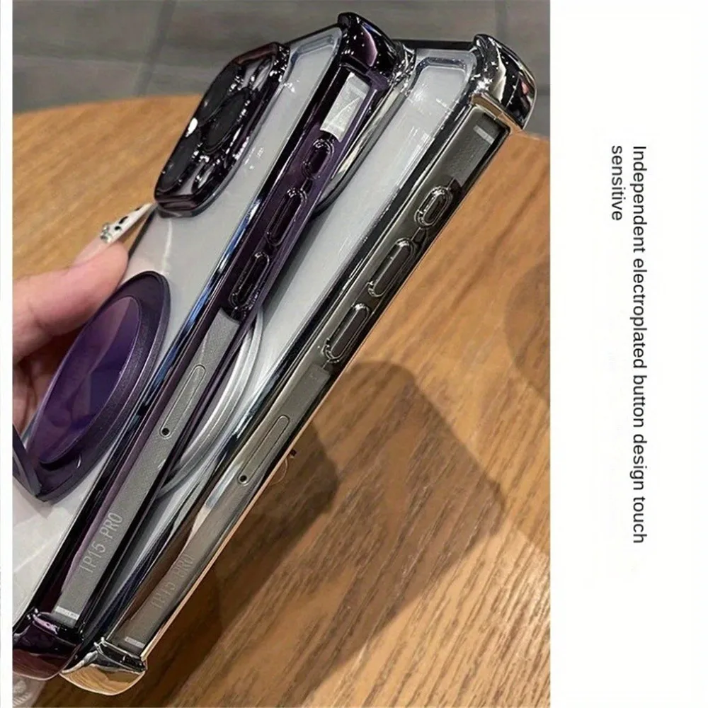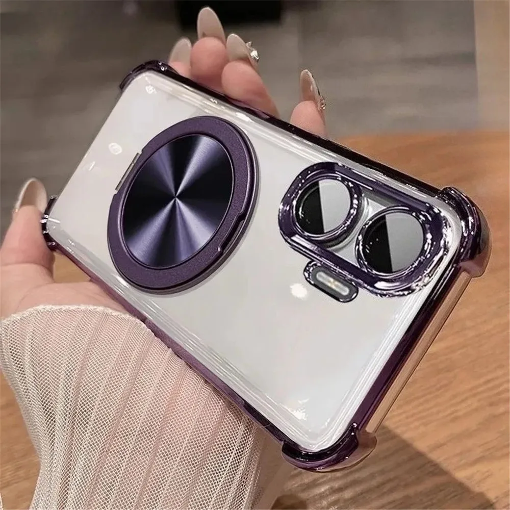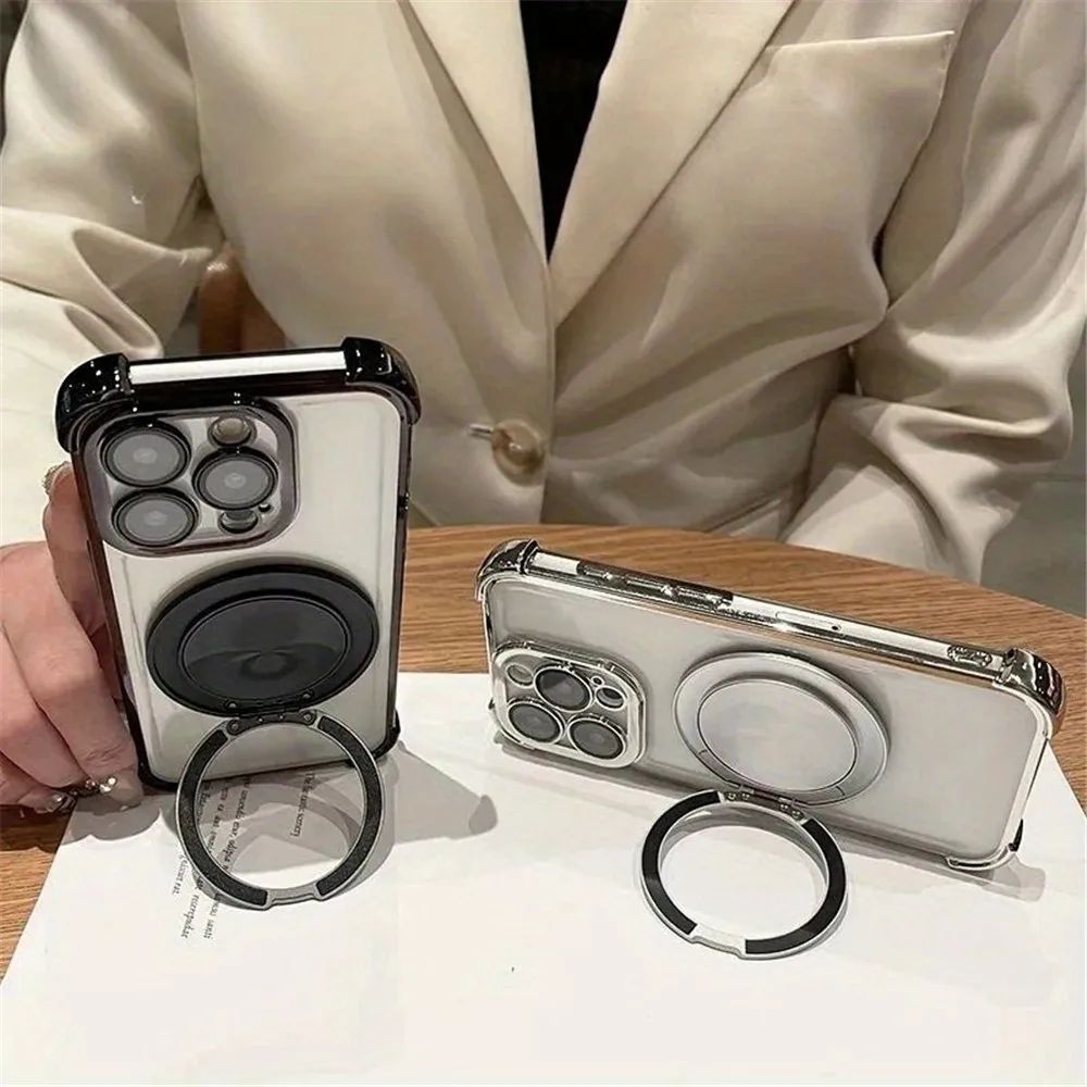 Comprar Funda de teléfono transparente a prueba de golpes de lujo para iPhone 16 15 14 13 12 11 Pro Max 8 7 Plus XR XS Max soporte magnético cubierta de parachoques