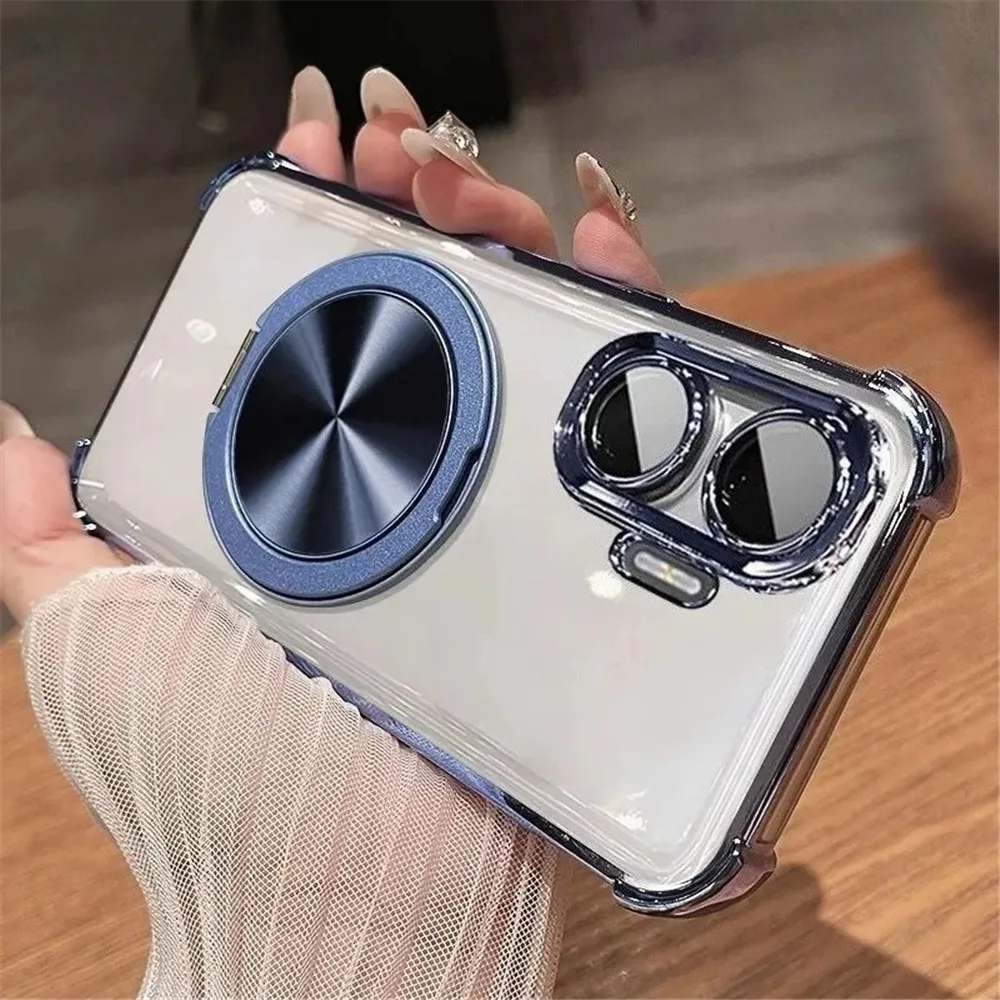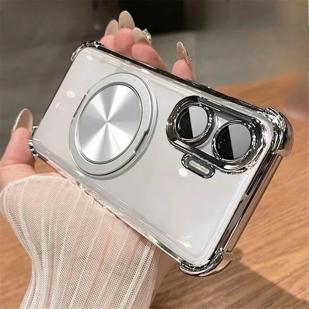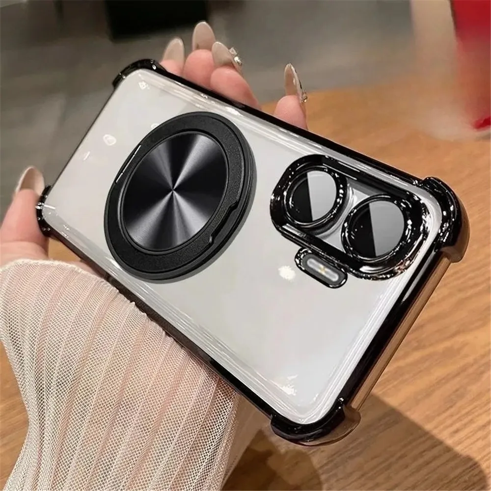 Funda de teléfono transparente a prueba de golpes de lujo para iPhone 16 15 14 13 12 11 Pro Max 8 7 Plus XR XS Max soporte magnético cubierta de parachoques