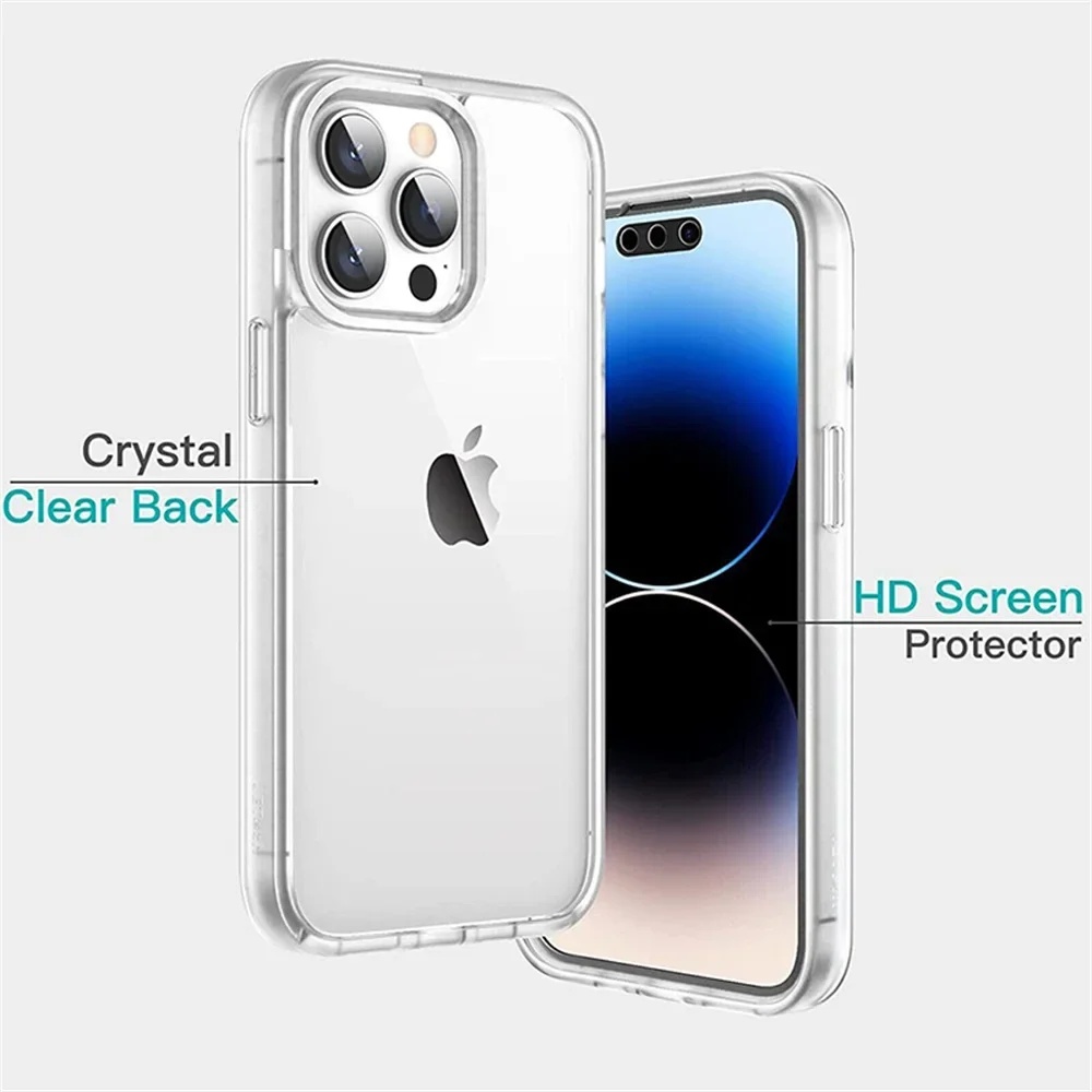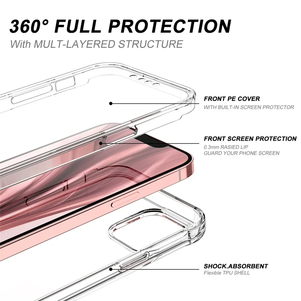Funda de teléfono transparente a prueba de golpes con protección completa 360 para iPhone 16 15 14 11 12 13 Pro Max, funda trasera de silicona de doble cara TPU para PC