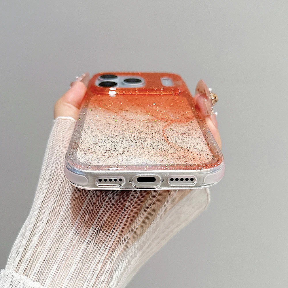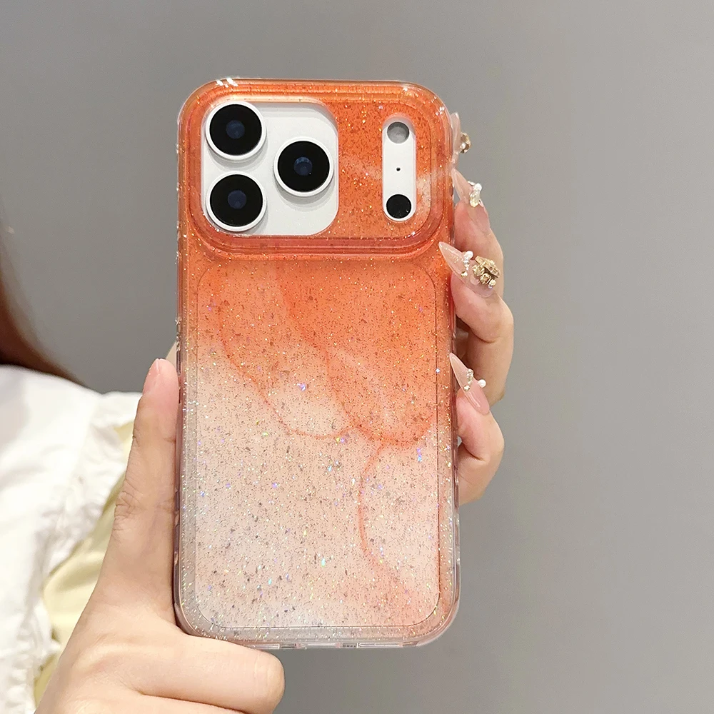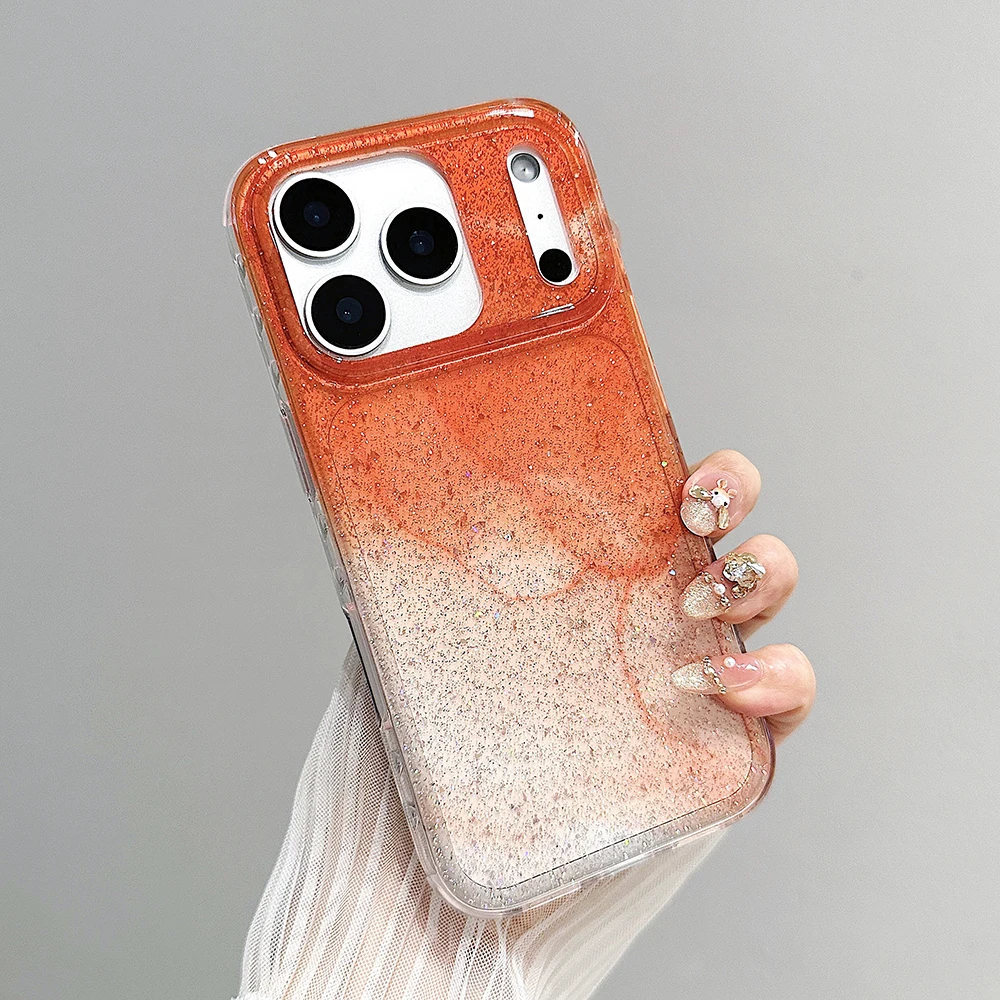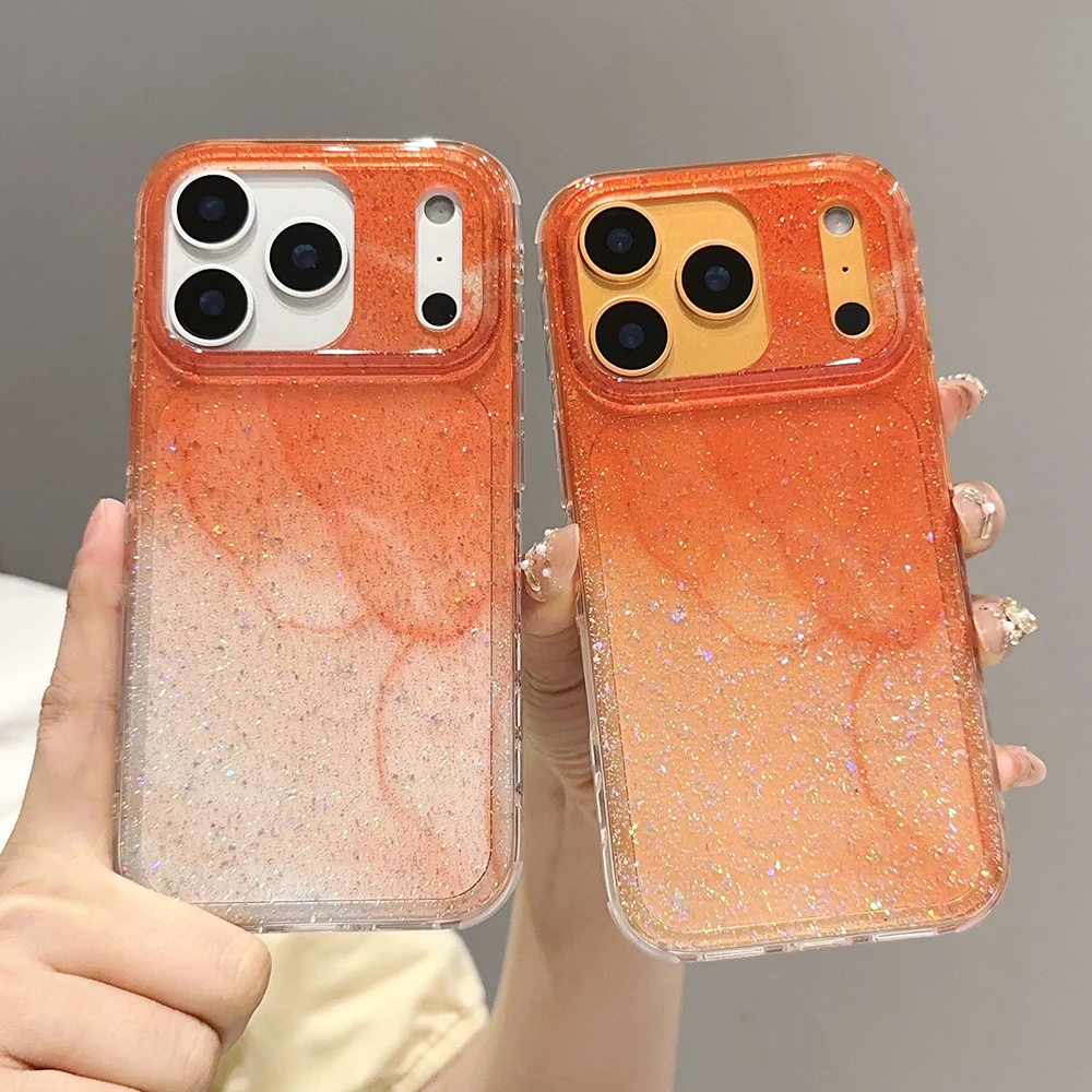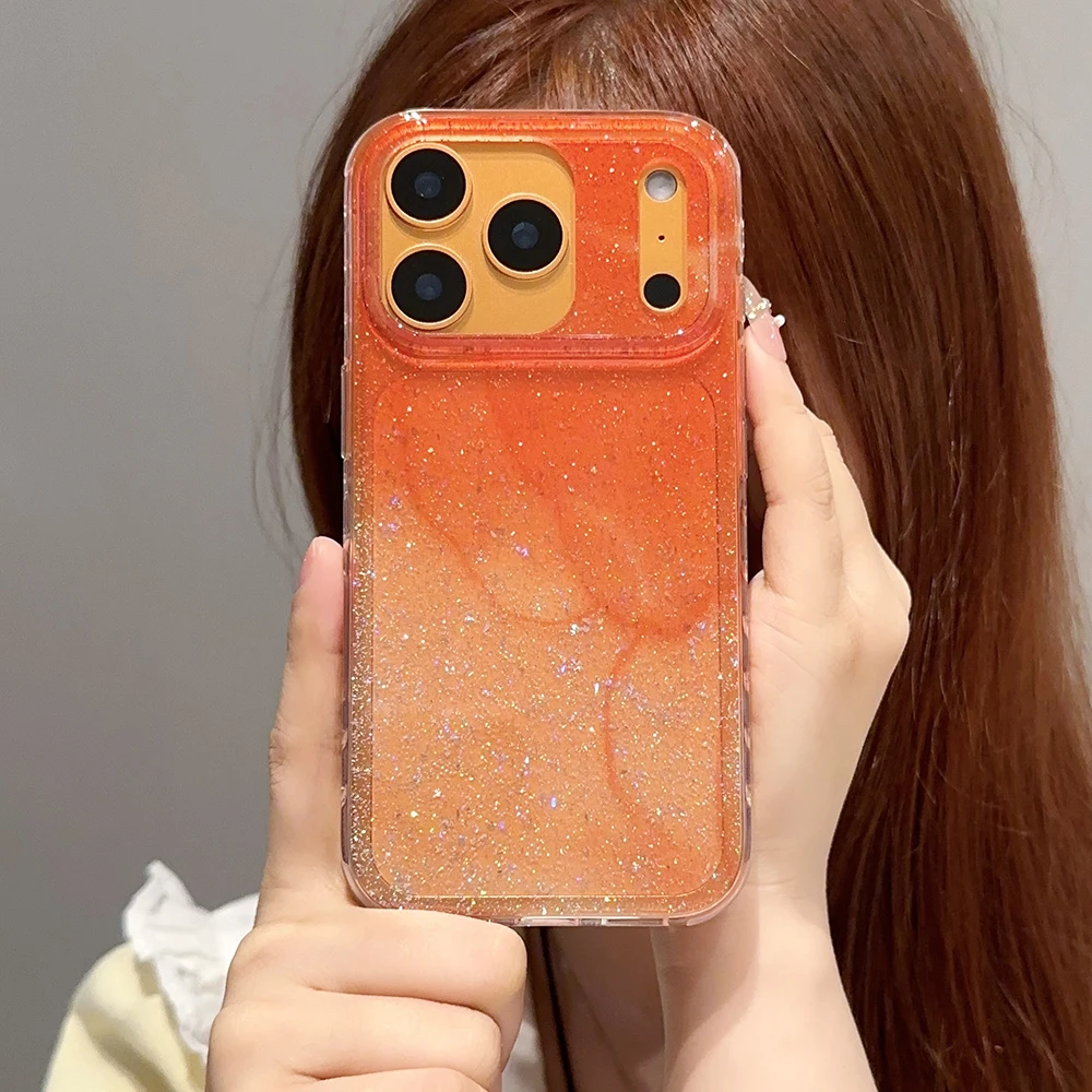 Funda de teléfono transparente con brillo degradado naranja coreano para iPhone 13 15 14 16 Pro Max, funda a prueba de golpes para Iphone 17 17pro 17promax