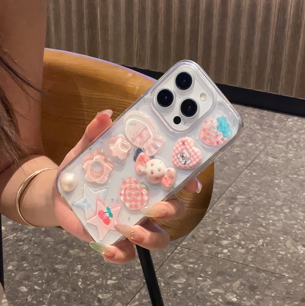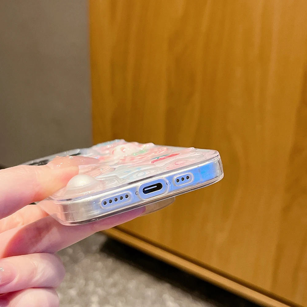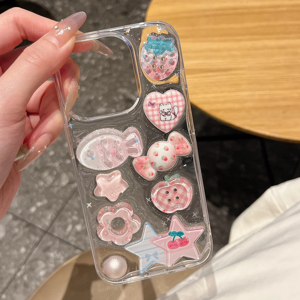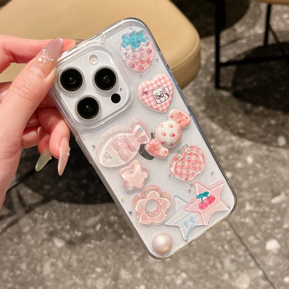 Funda de teléfono transparente con purpurina de pez rosa INS 3D, funda trasera elegante a prueba de golpes para iPhone 16 15 14 13 Pro Max