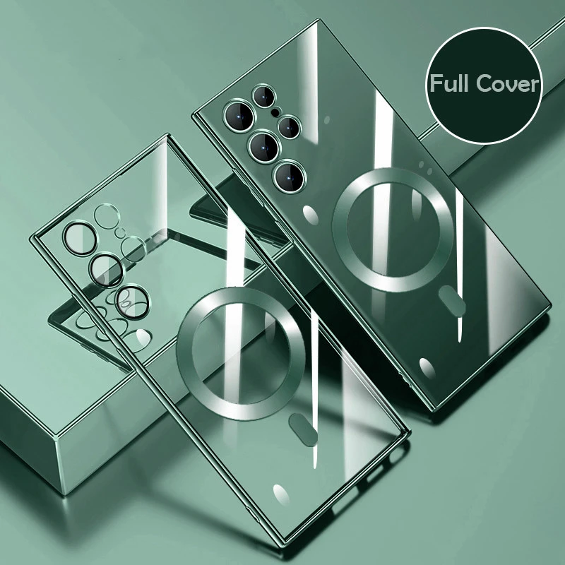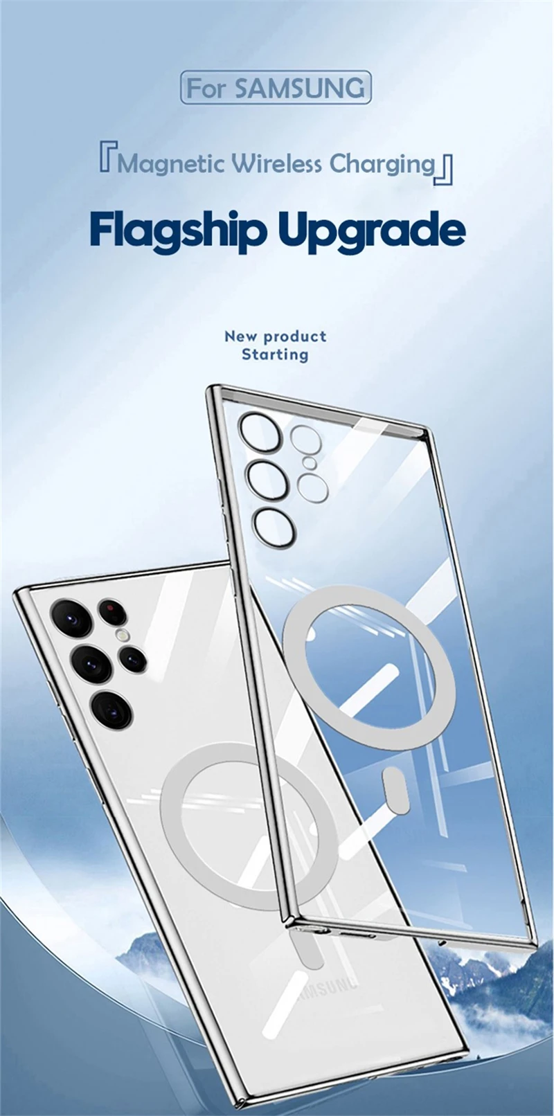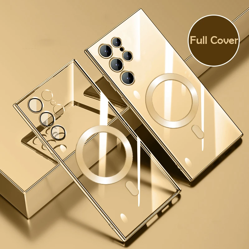 Comprar Funda de teléfono transparente de silicona suave chapada de lujo para Magsafe Samsung S25 S24 S23 S22 Plus cubierta protectora Ultra magnética