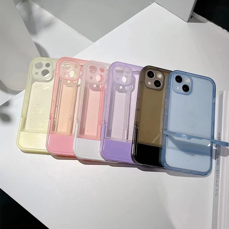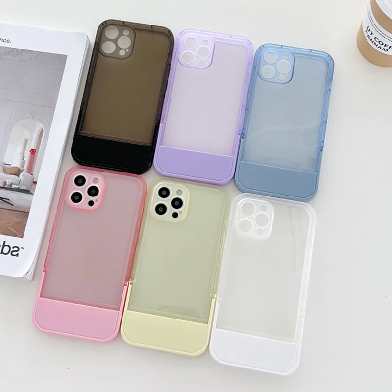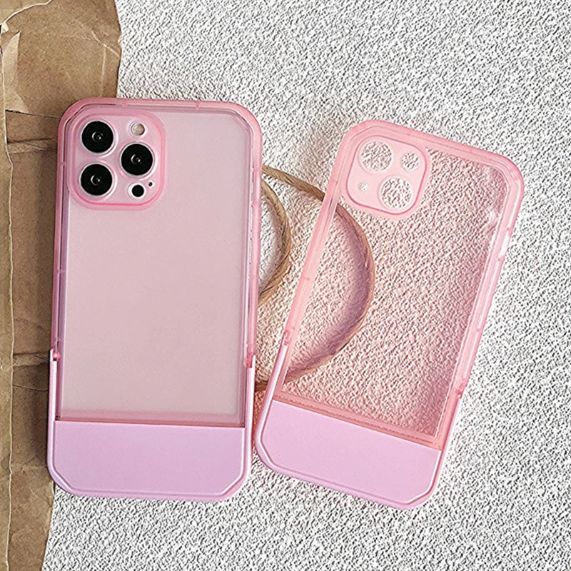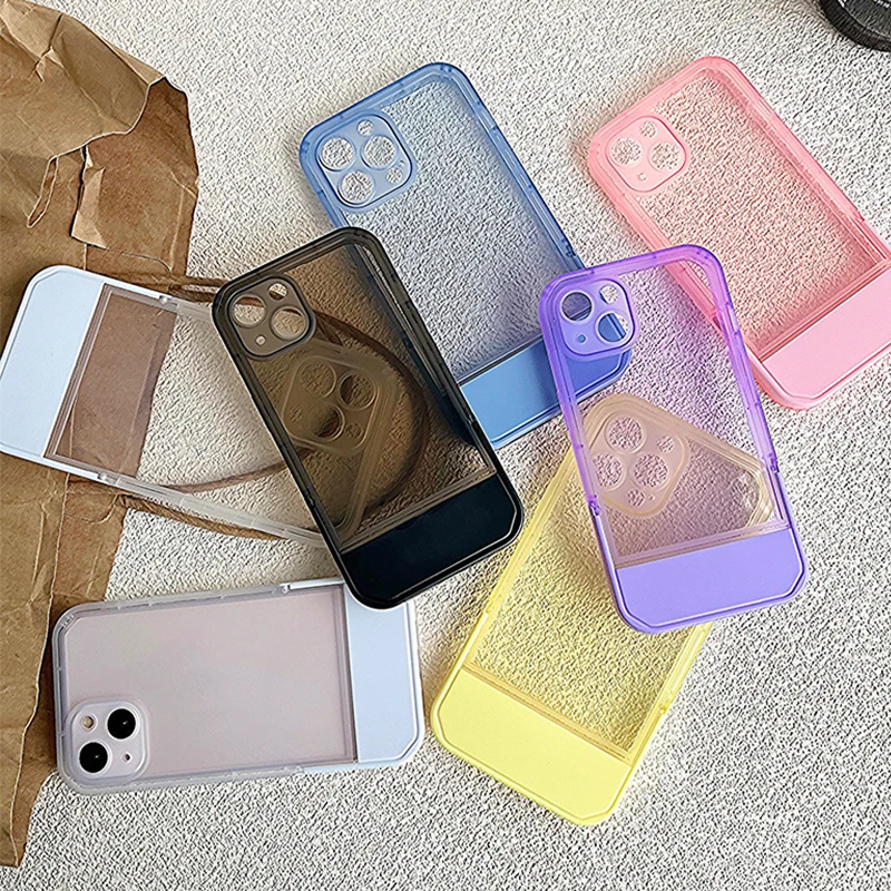 Comprar Funda de teléfono transparente con soporte Invisible, cubierta protectora suave a prueba de golpes para iPhone 14, 13, 12 Pro Max, 11, 7, 8 Plus, XS, XR